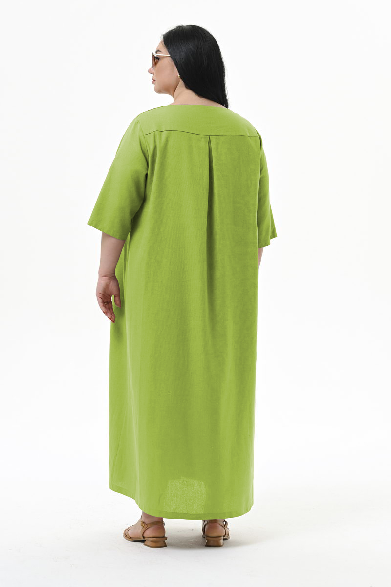 Платье А-силуэта из льна, с декоративной планкой по переду, цвет "яркий салатовый"