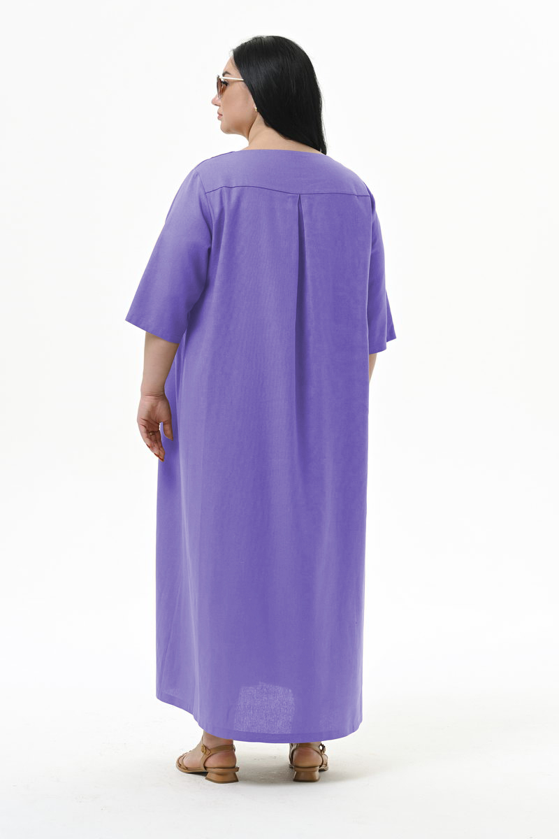 Платье А-силуэта из льна, с декоративной планкой по переду, лавандовое