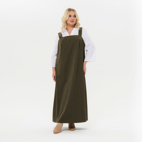 Центральный шов по переду и V-вырез зрительно вытягивают силуэт.