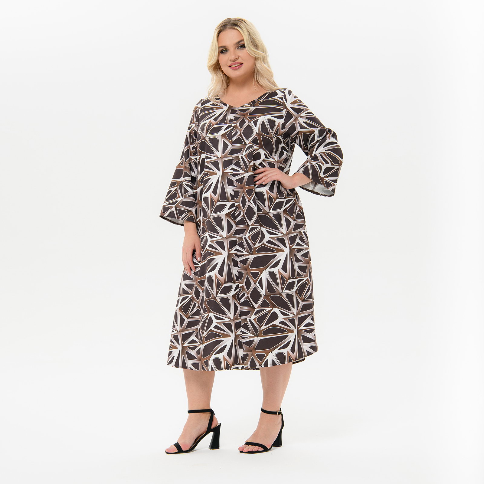 Платье А-силуэта, из плательной ткани, принт "абстракция шоколадно-кофейная"