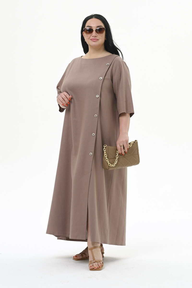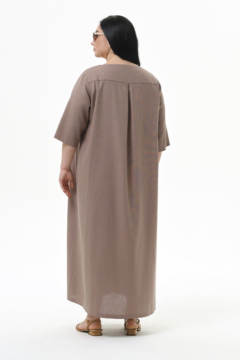 Платье удлиненное А-силуэта из смесовой ткани, содержащей в составе лен и вискозу.