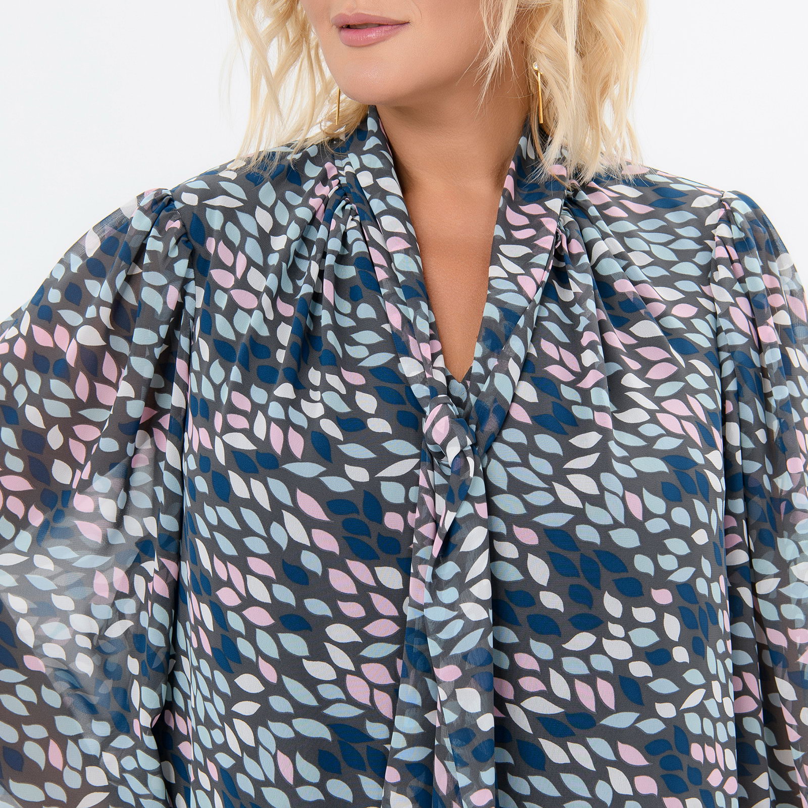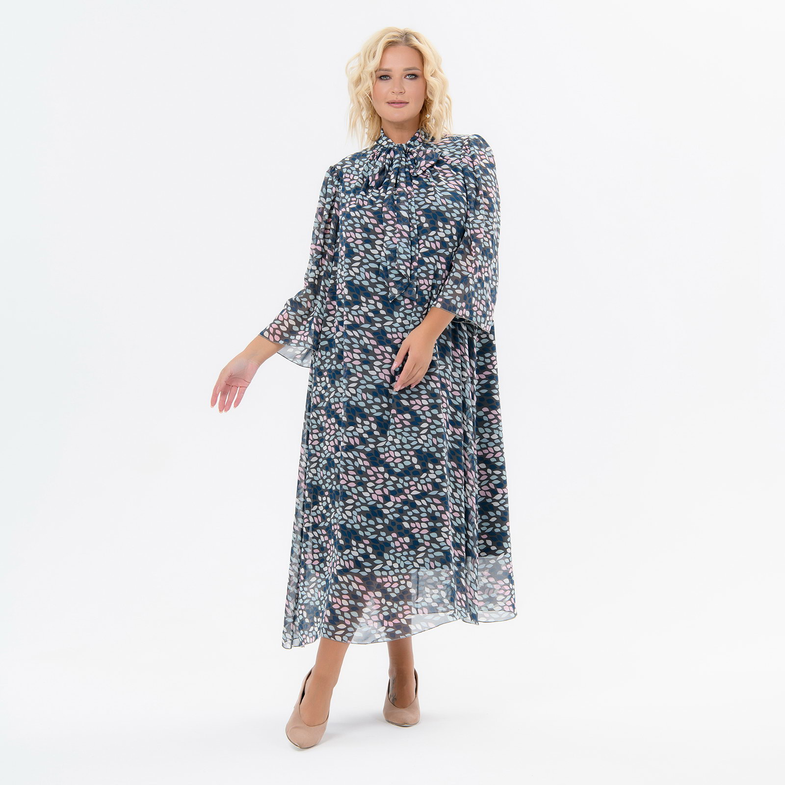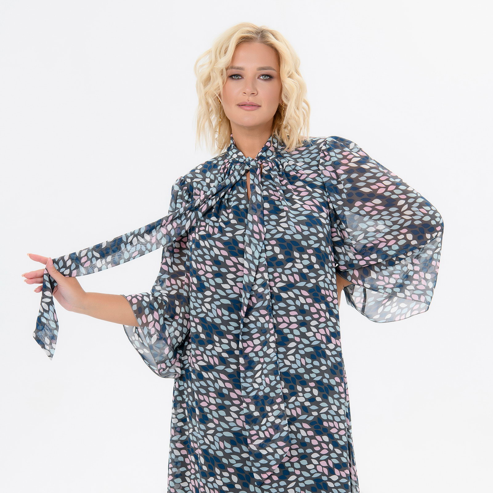 Платье А-силуэта, шифоновое, с воротником "аскот", принт "мятно-пудровый" *