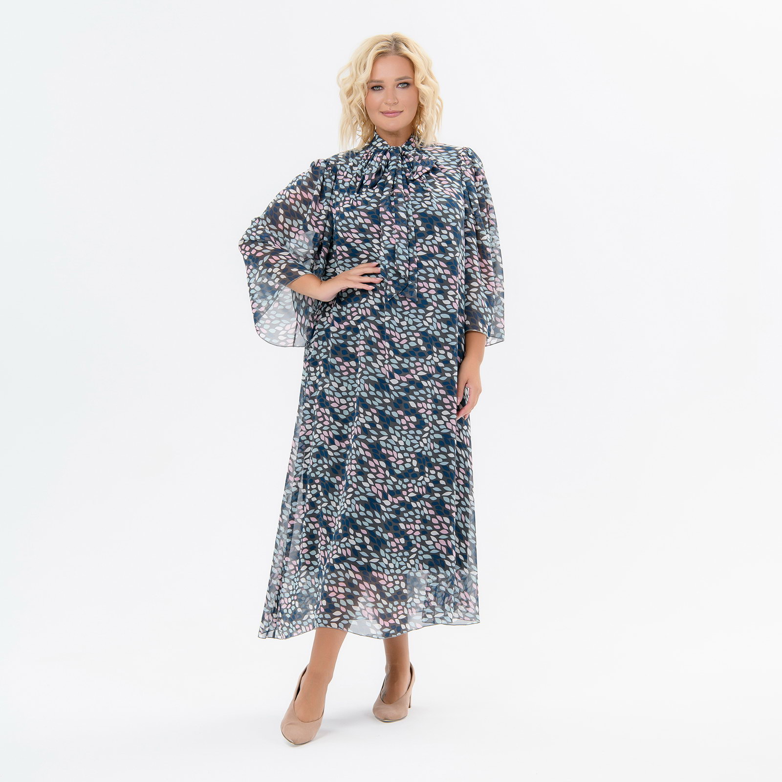 Изысканное платье  А-силуэта.из шифона длиной миди. По горловине воротник "аскот", завязывающийся в красивый бант.
