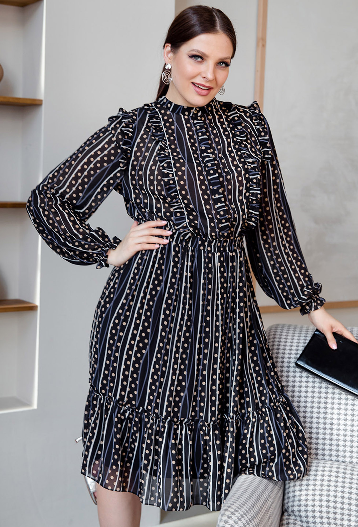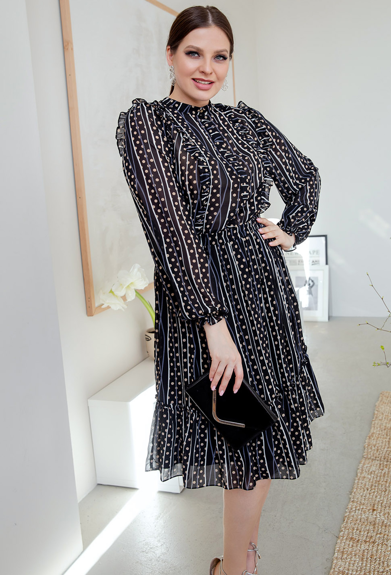 ст. цена2499руб.! Платье ASV 2203 черный горох