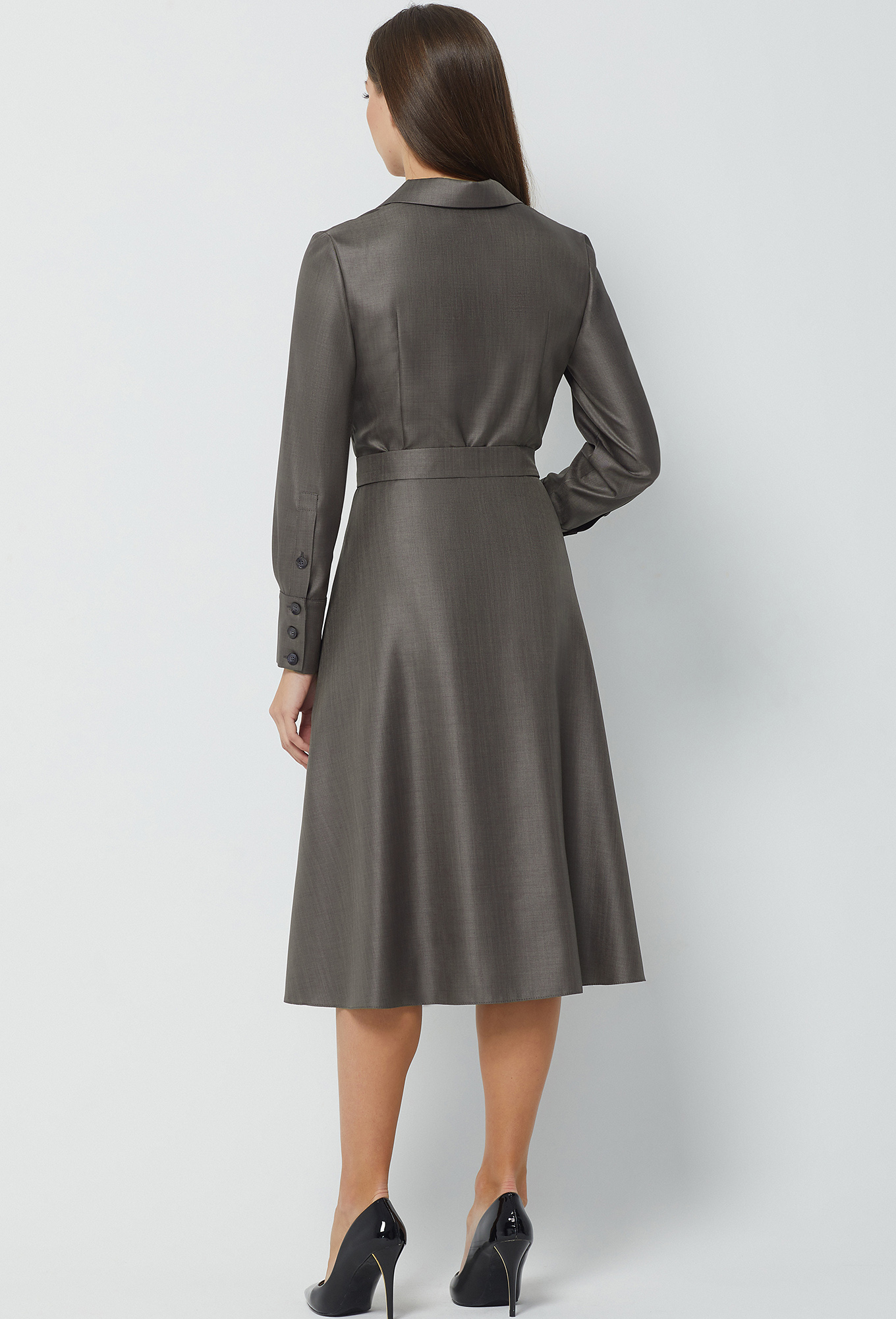 Платье-миди полуприлегающего силуэта, отрезное по линии талии , с отложным воротником с лацканами