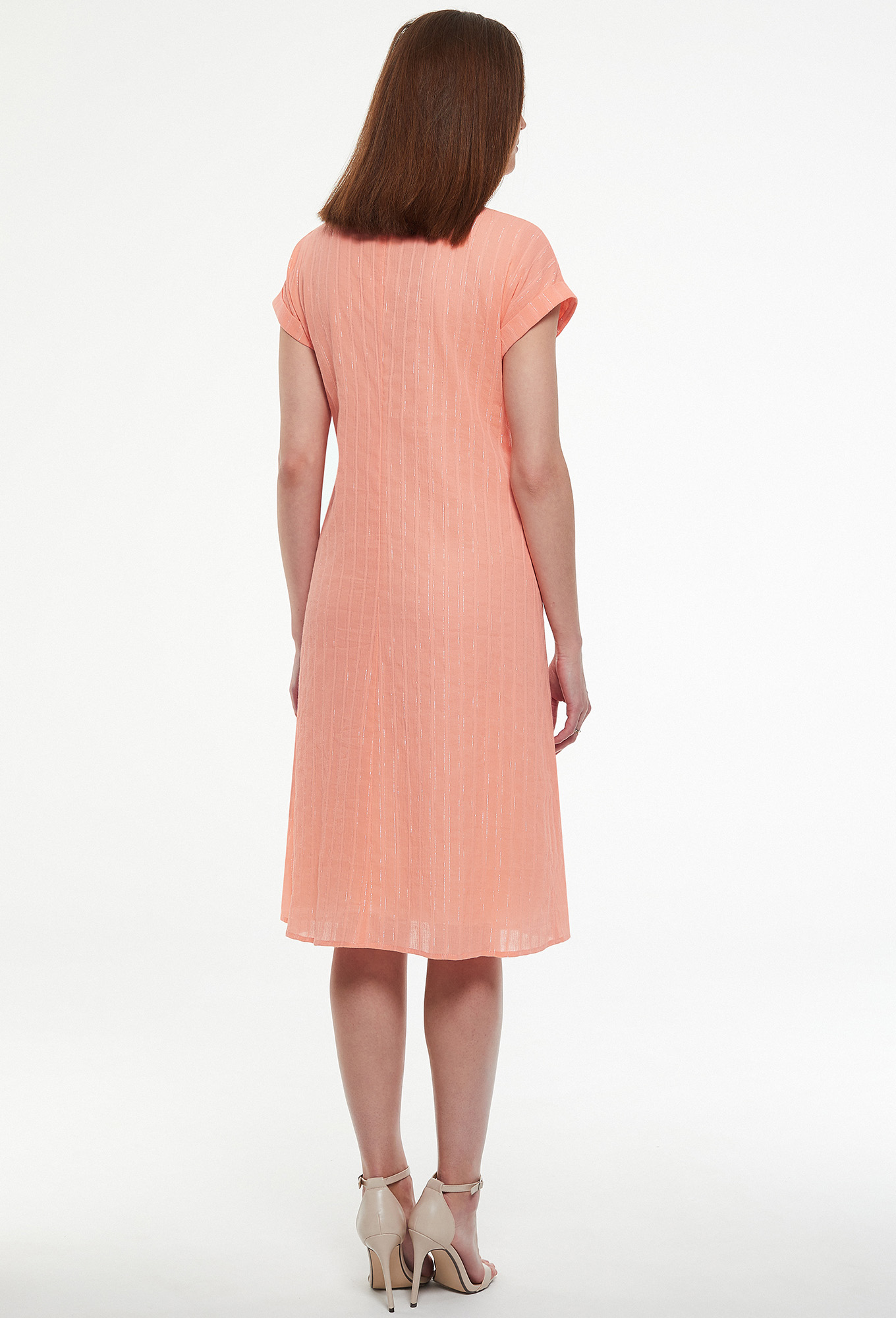 Стильное платье-трапеция с цельнокроенными рукавами с манжетами и округлым вырезом горловины. Платье лёгкое, свободное. Данная модель станет незаменимым вариантом, который сочетает в себе стиль и комфорт одновременно.