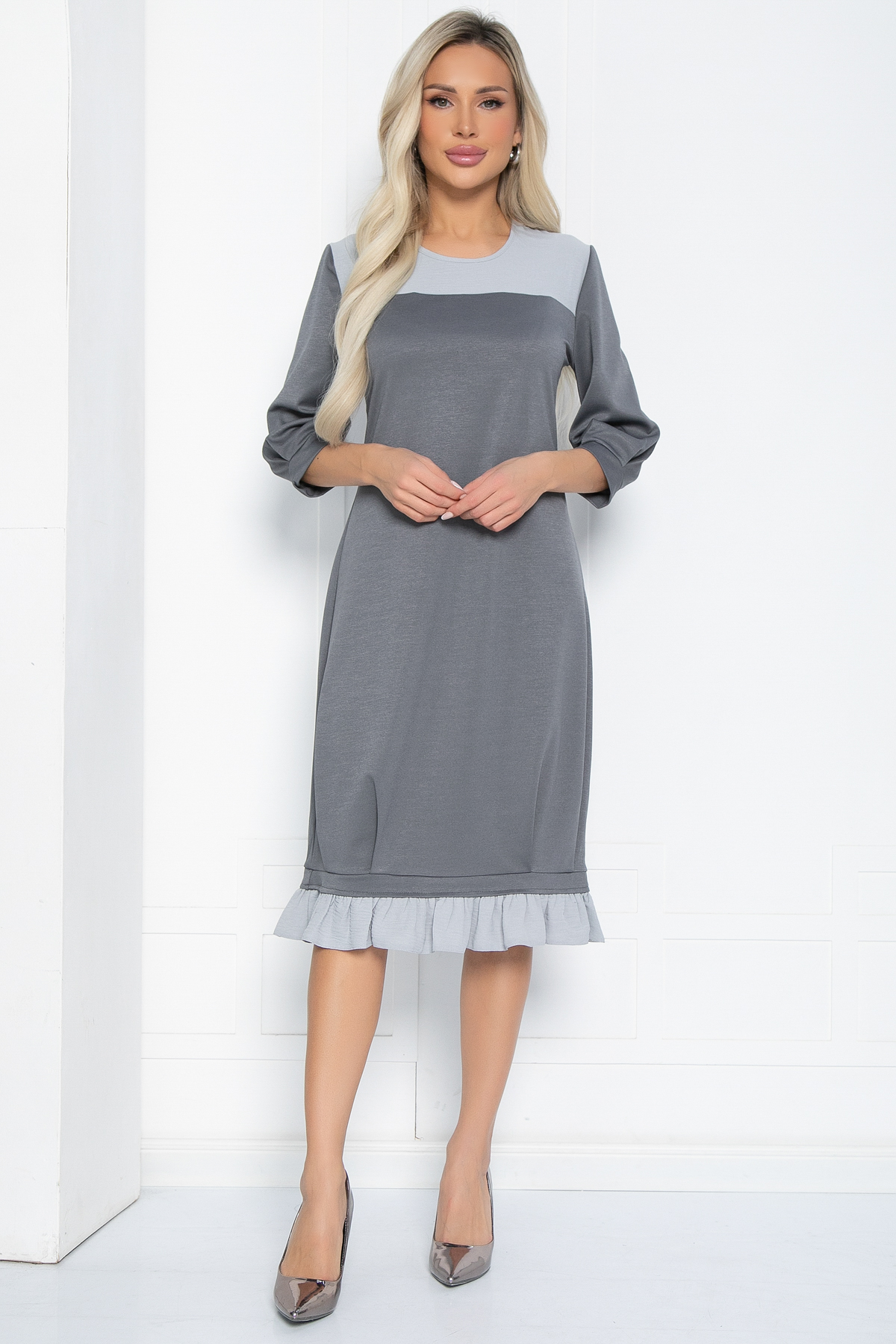 Женское трикотажное платье идеально подойдет для тех, кто ценит стиль и комфорт. Это нарядное изделие выполнено из трикотажной ткани, что обеспечит отличную посадку по фигуре. Низ юбки украшен воланом, добавляя женственности вашему образу. Рукава с манжетами придают дополнительный шарм, делая его незаменимым элементом гардероба.