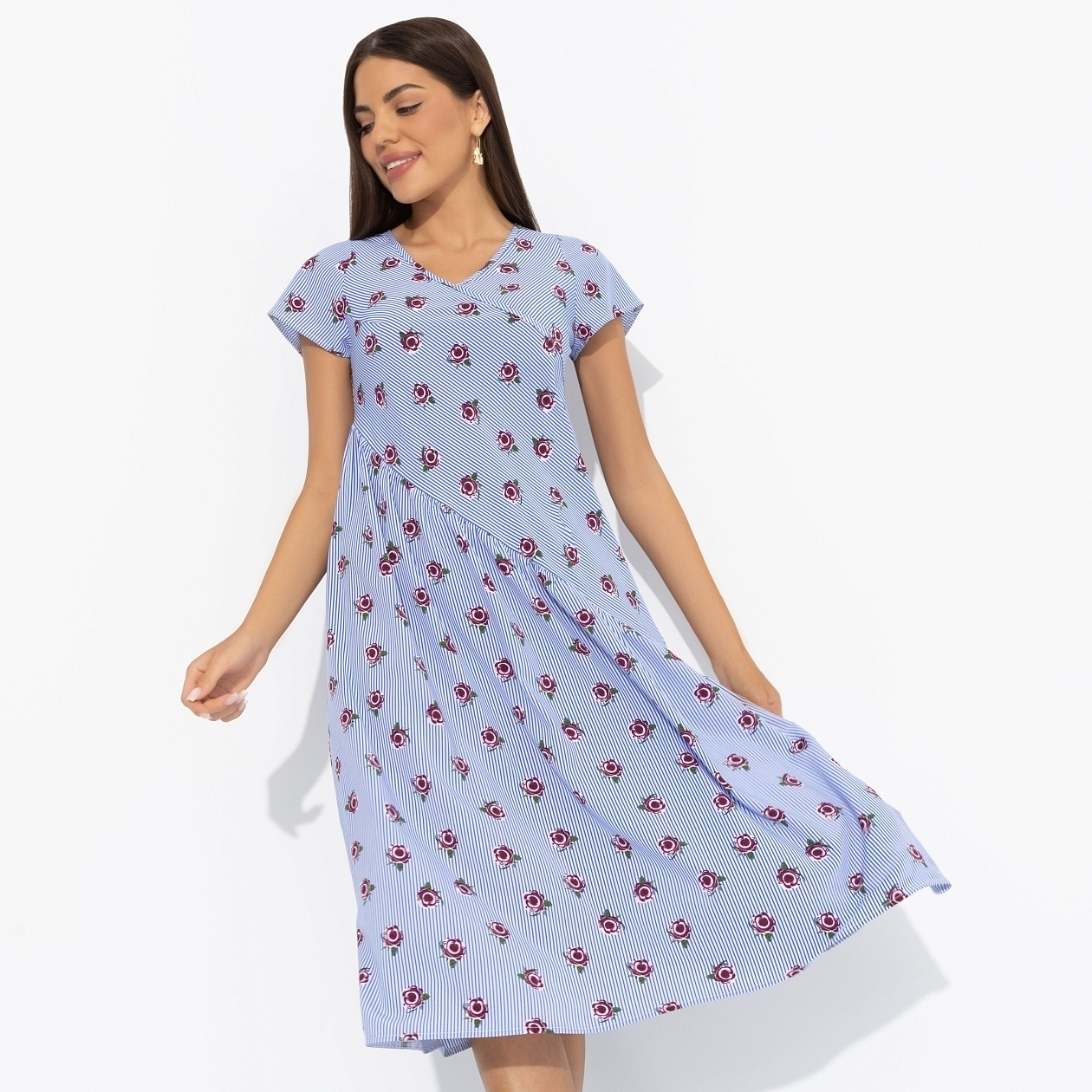Поймай «Лёгкость момента» – и больше не отпускай. Платье по косой, с карманами и талантом дружить с любой фигурой. Миди – но эффект максимальный. Платье расслабленного расклешенного силуэта. Акцентный крой изделия по косой.