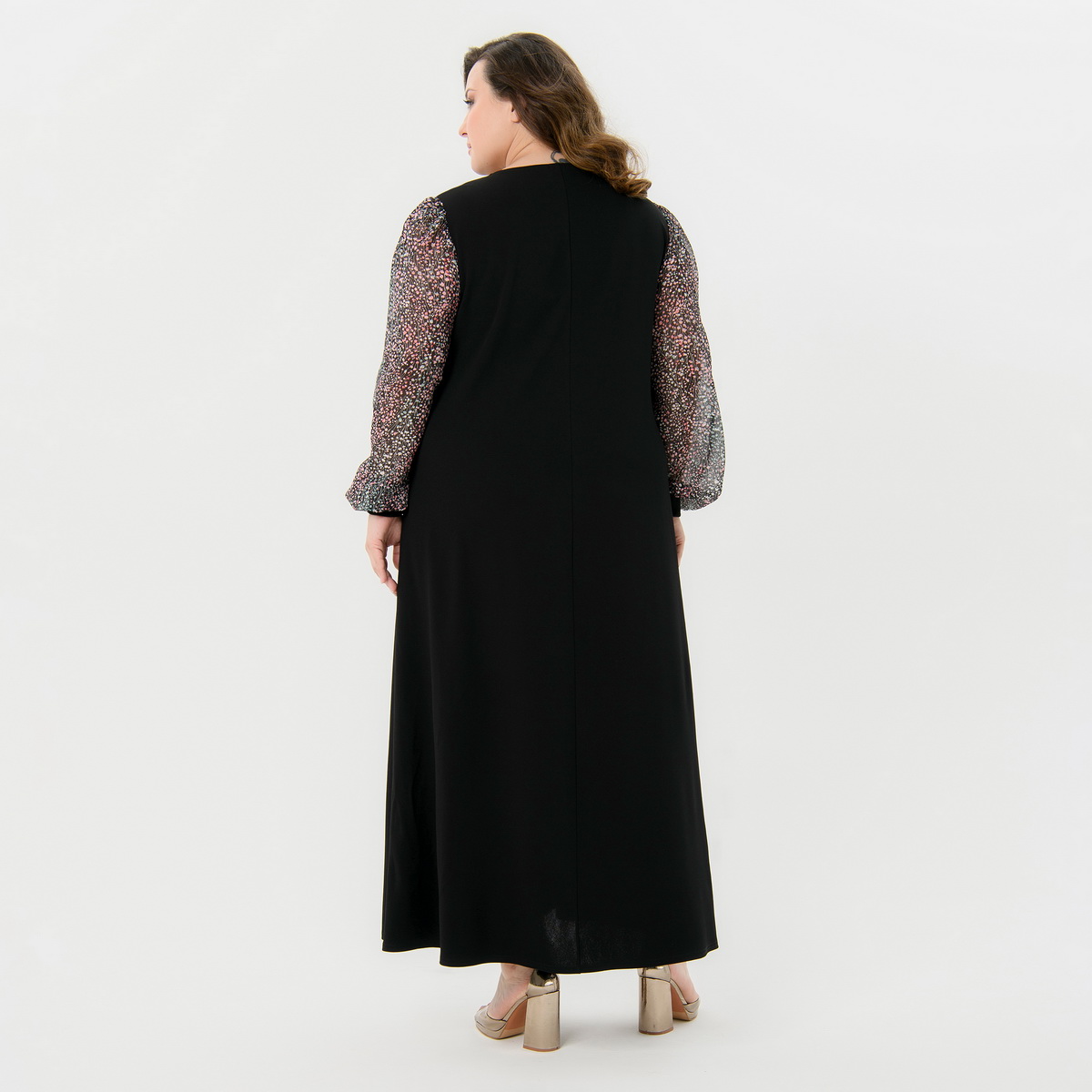 Платье длинное А-силуэта, черное, с шифоновыми рукавами