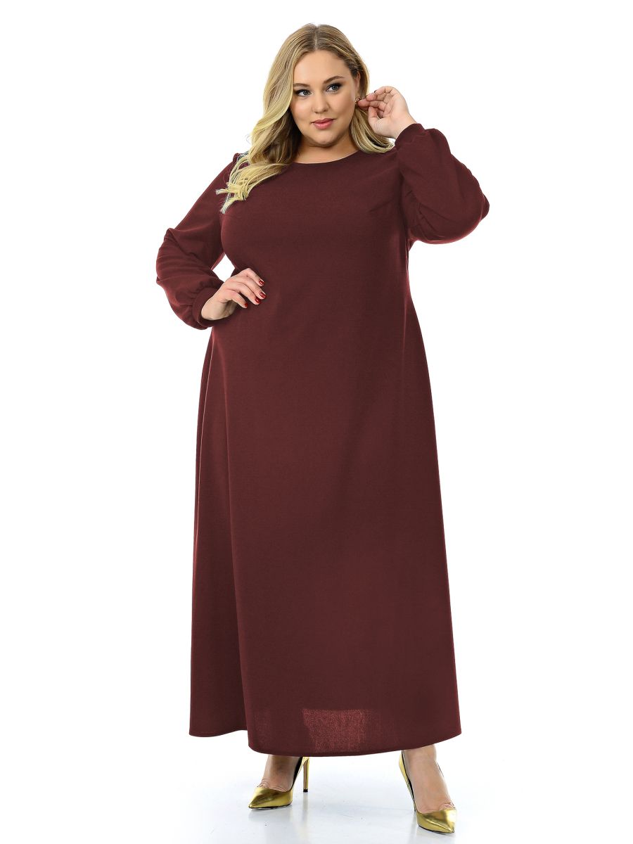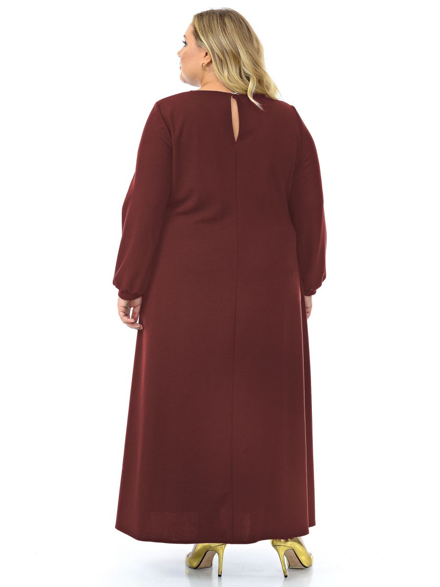Платье длинное А-силуэта, из крепа с эластаном, бордовое