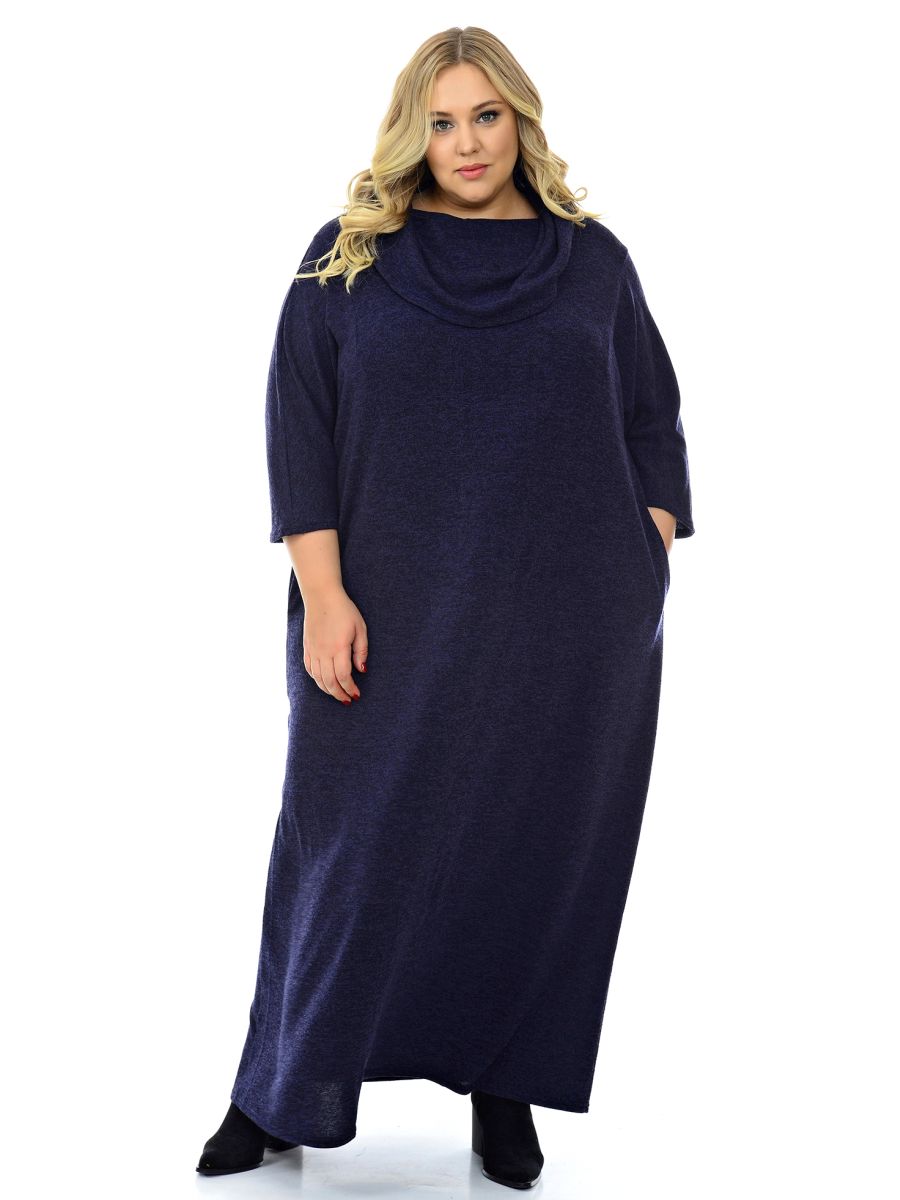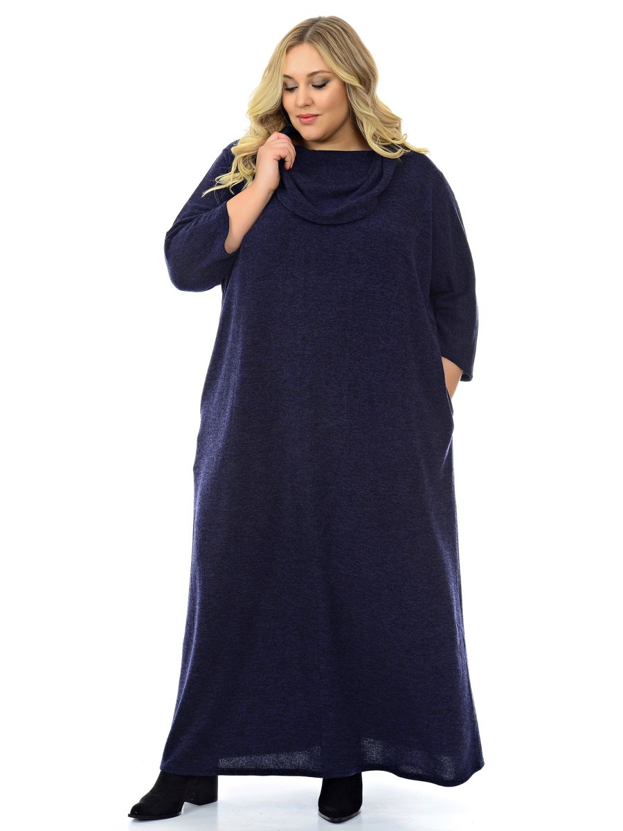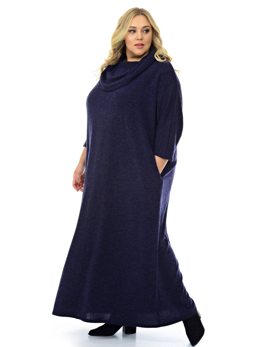 Платье длинное из ангоры, с "хомутом", темно-синее
