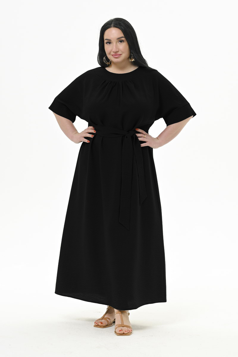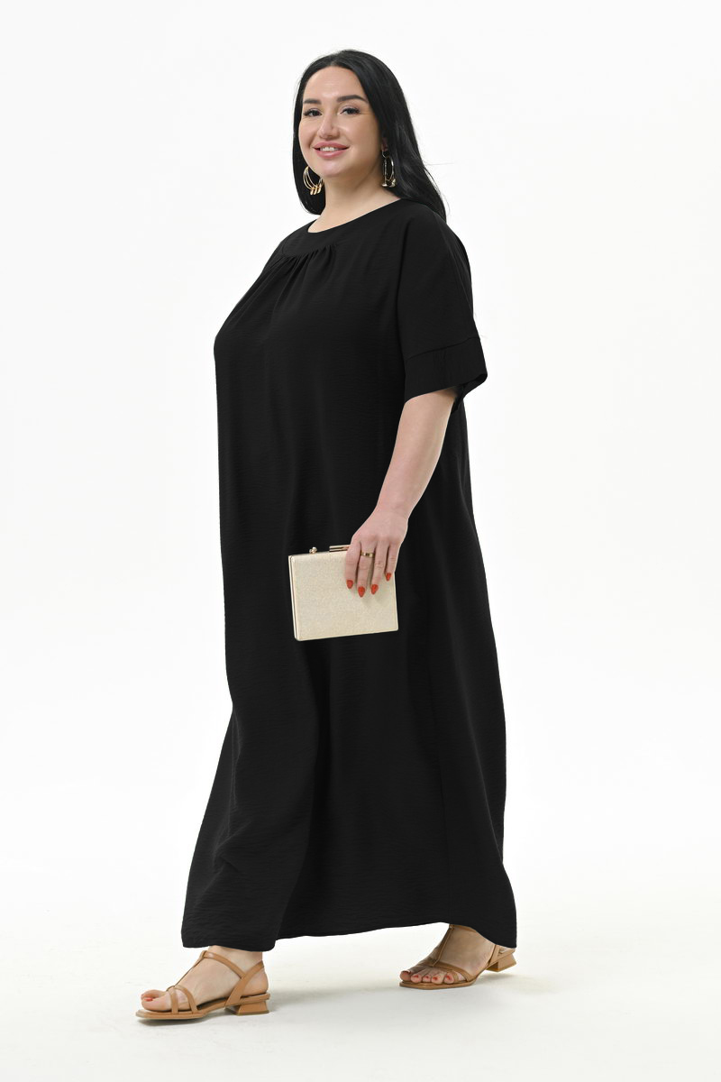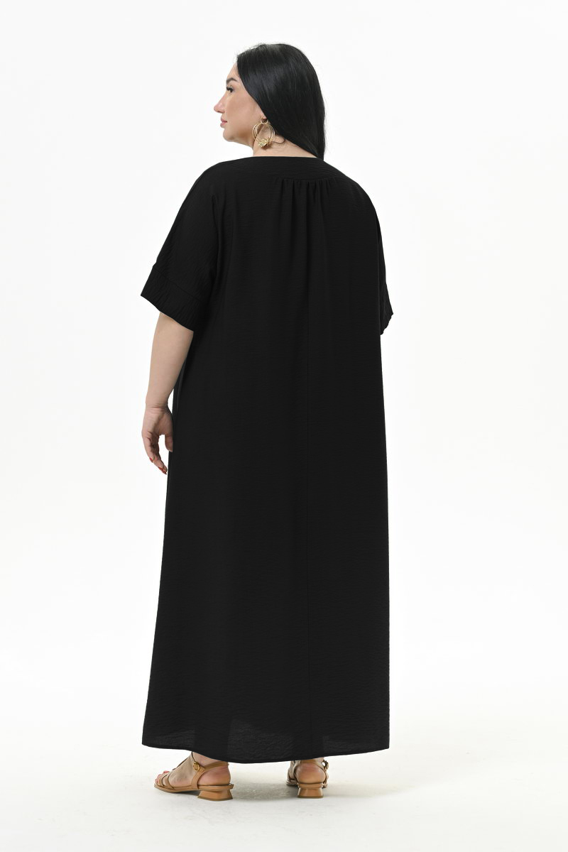 Длинное, свободное платье А-силуэта из фактурной плательной вискозы очаровывает своей элегантностью.