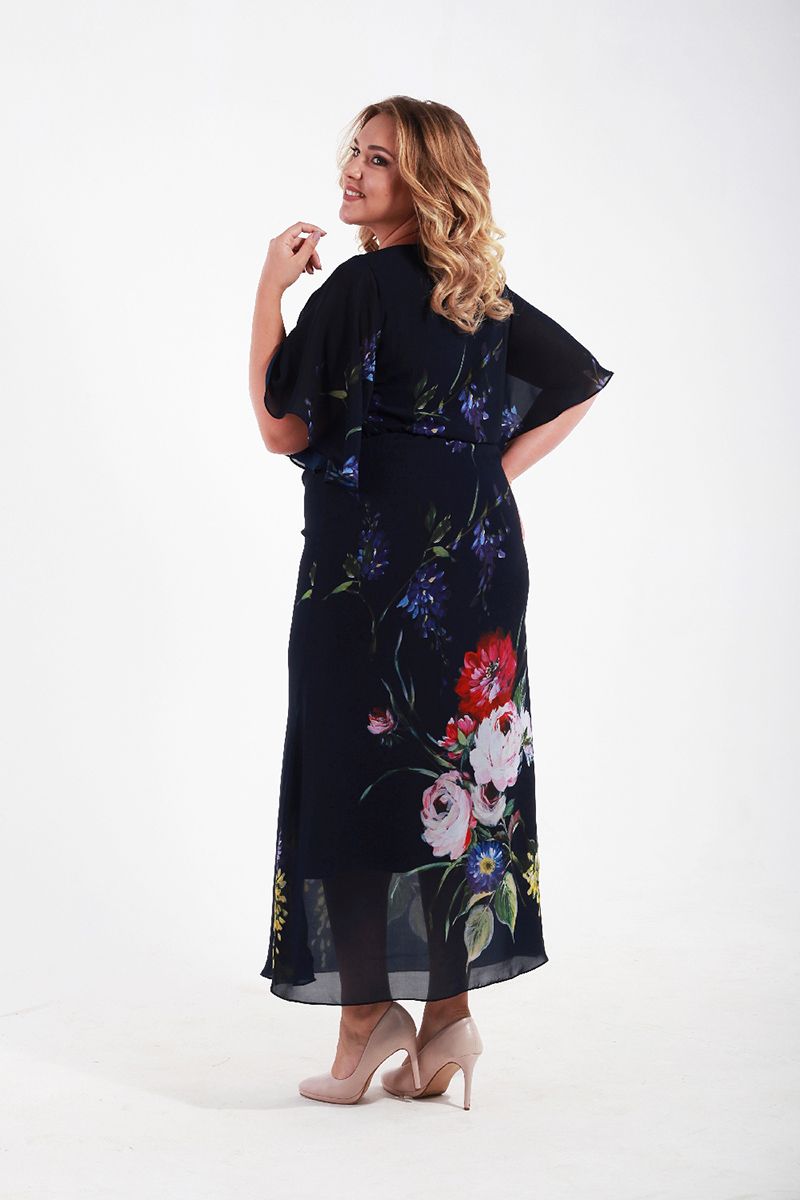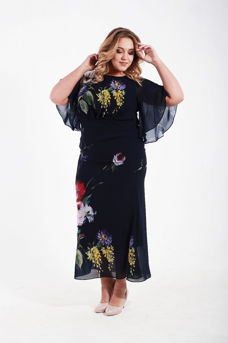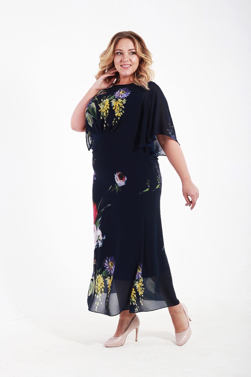 Платье из принтованого шифона с коротким рукавом позволит любой полной даме создать образ изысканный и неповторимый. Цветовая гамма этого большого шифонового платья отличается нежностью и очарованием, его воздушная струящаяся ткань скрывает излишнюю полноту, делает пышную красавицу изящнее и стройнее. Большое платье такого фасона смотрится более, чем шикарно на дамах с размером плюс, оно удачно прячет имеющиеся недостатки их фигур, подчеркивая их женственность и статность. В жаркие дни это шифоновое платье большого размера будет особенно актуально – его невесомость принесет хозяйке желанную прохладу, позволит ей выглядеть легко и грациозно.
