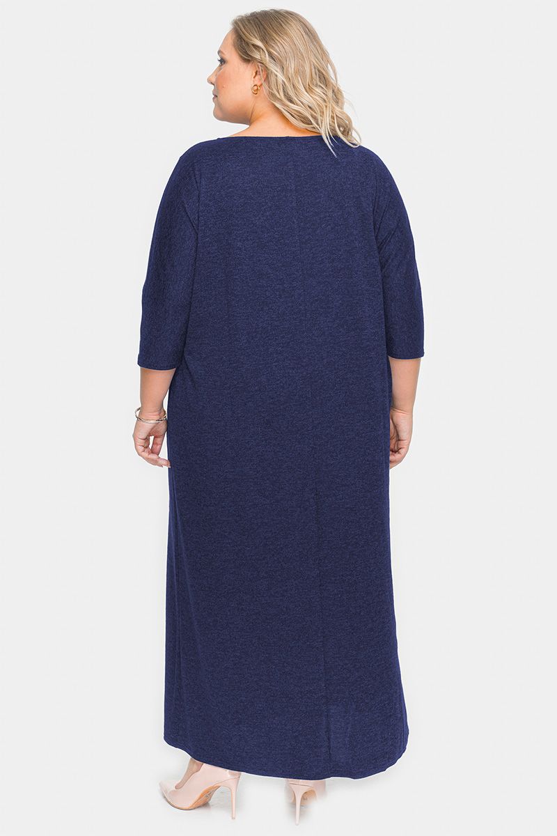 Платье длинное, свободного силуэта, из меланжевого джерси. По переду вставка в форме вытянутого треугольника из основной ткани. Вырез горловины "лодочка".