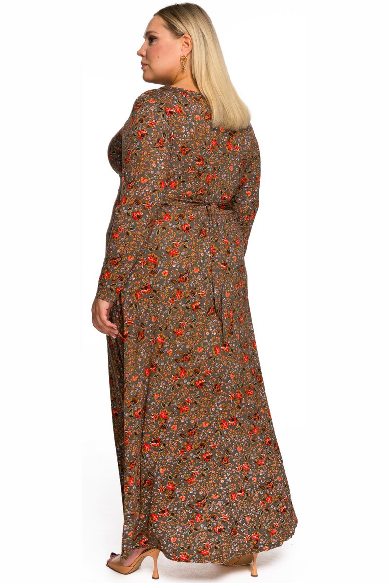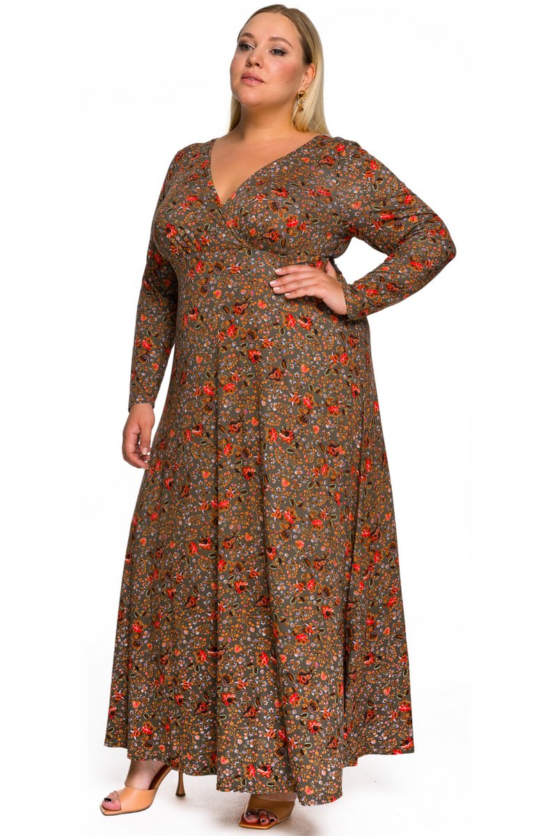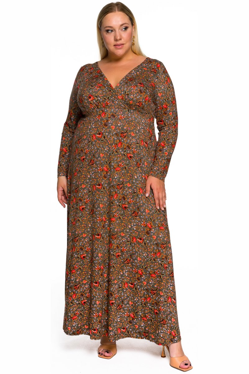 Платье длинное из вискозы с эластаном, лиф с запАхом, принт "цветы и пряности" *