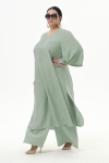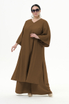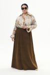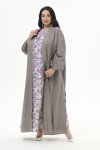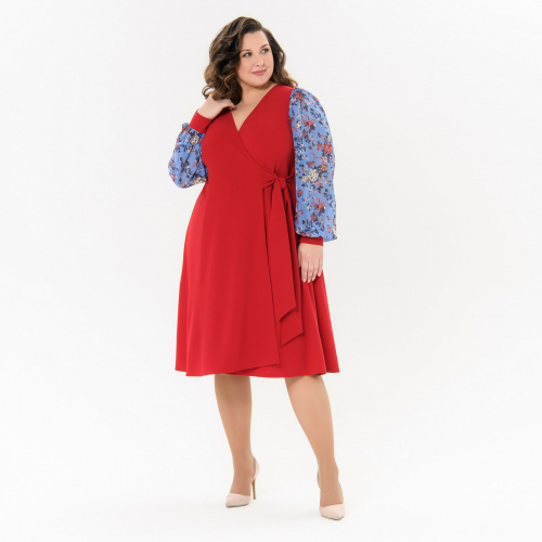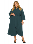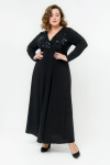Длинное платье из вискозы с эластаном.  Верхняя часть платья отрезная, с запАхом и V-вырезом. Рукав длинный. Талия фиксируется поясками на спинке, втачанными в боковые швы.