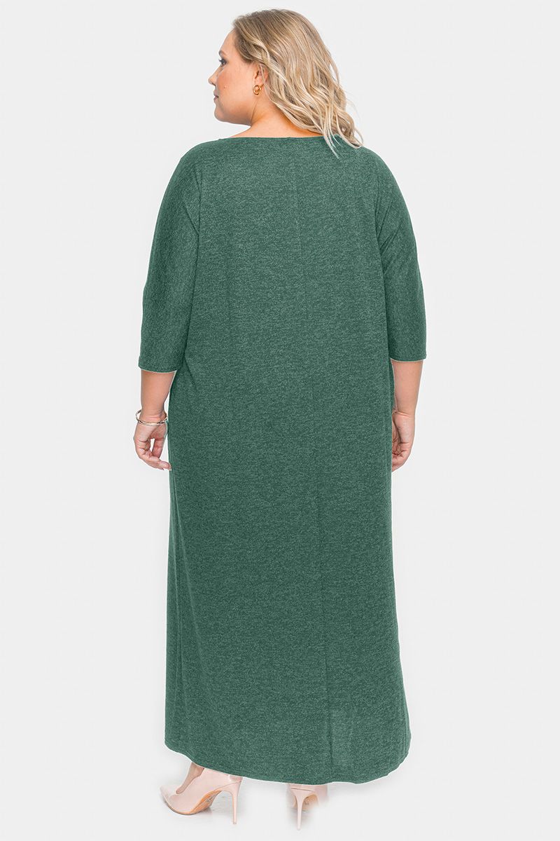 Платье длинное, свободного силуэта, из меланжевого джерси. По переду вставка в форме вытянутого треугольника из основной ткани. Вырез горловины "лодочка".