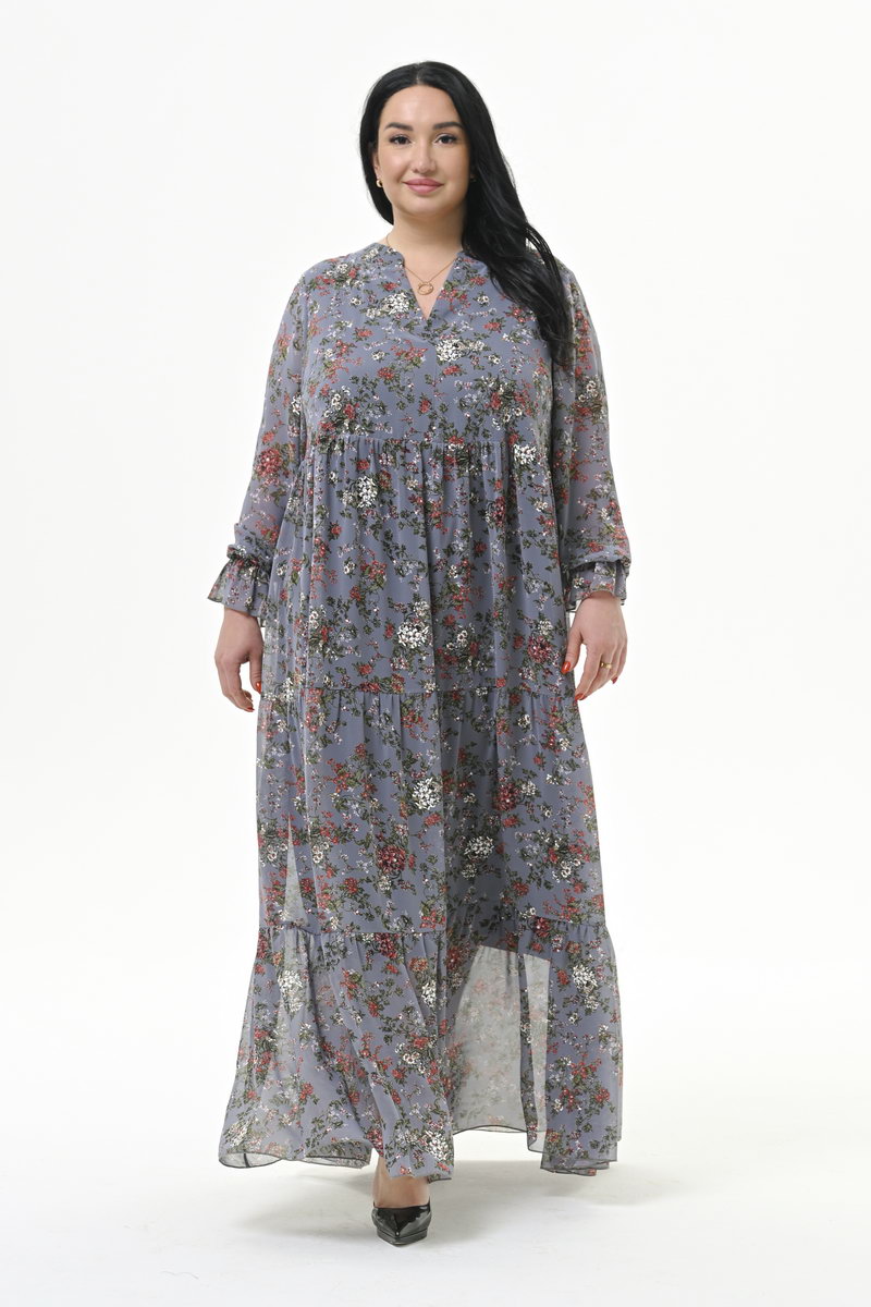 Роскошное ярусное длинное платье из шифона. Верхняя часть отрезная.