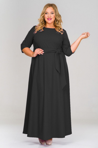 Длинное локоничное платье из крепа, пояс в цвет основной ткани
