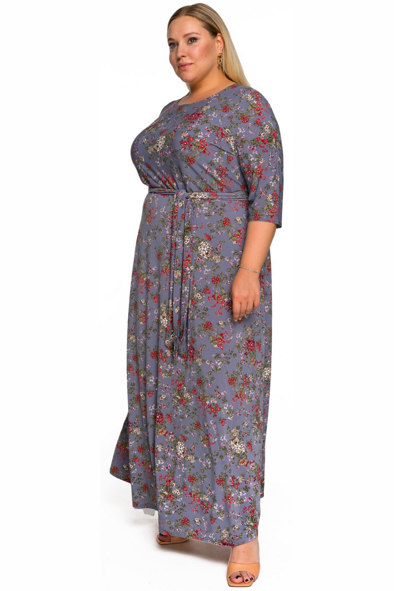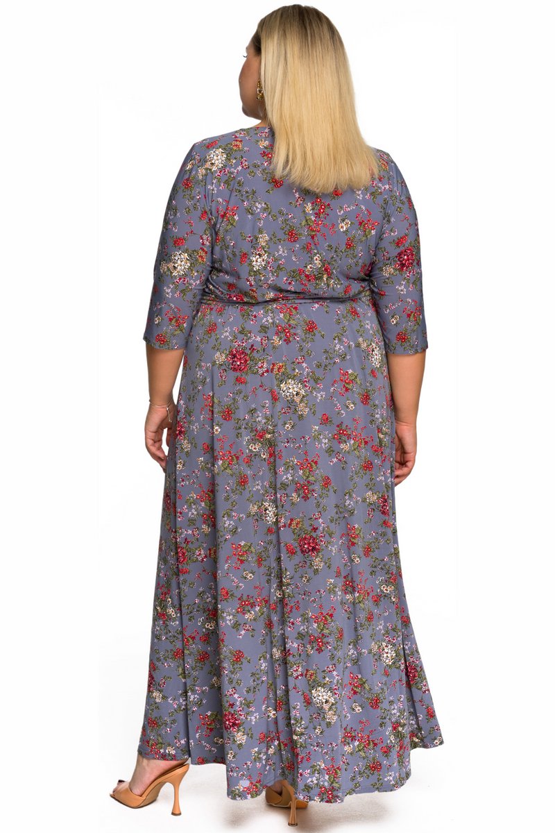 Платье длинное, рукава 3/4, вырез горловины округлый.