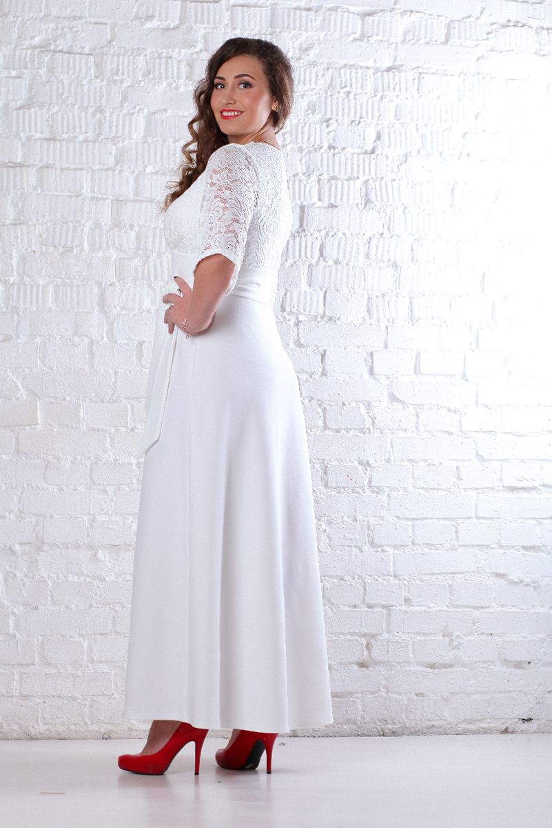Элегантное длинное вечернее платье из крепа с эластаном с кружевом и рукавом 3/4. Прекрасное платье для вашего торжества.