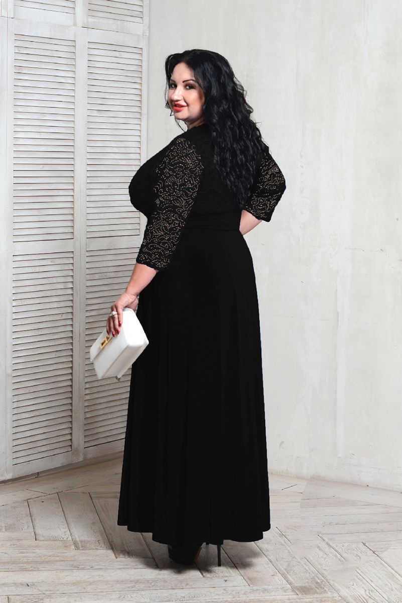 Элегантное длинное вечернее платье из легкого трикотажа с кружевом и рукавом 3/4.