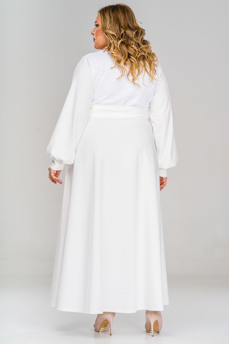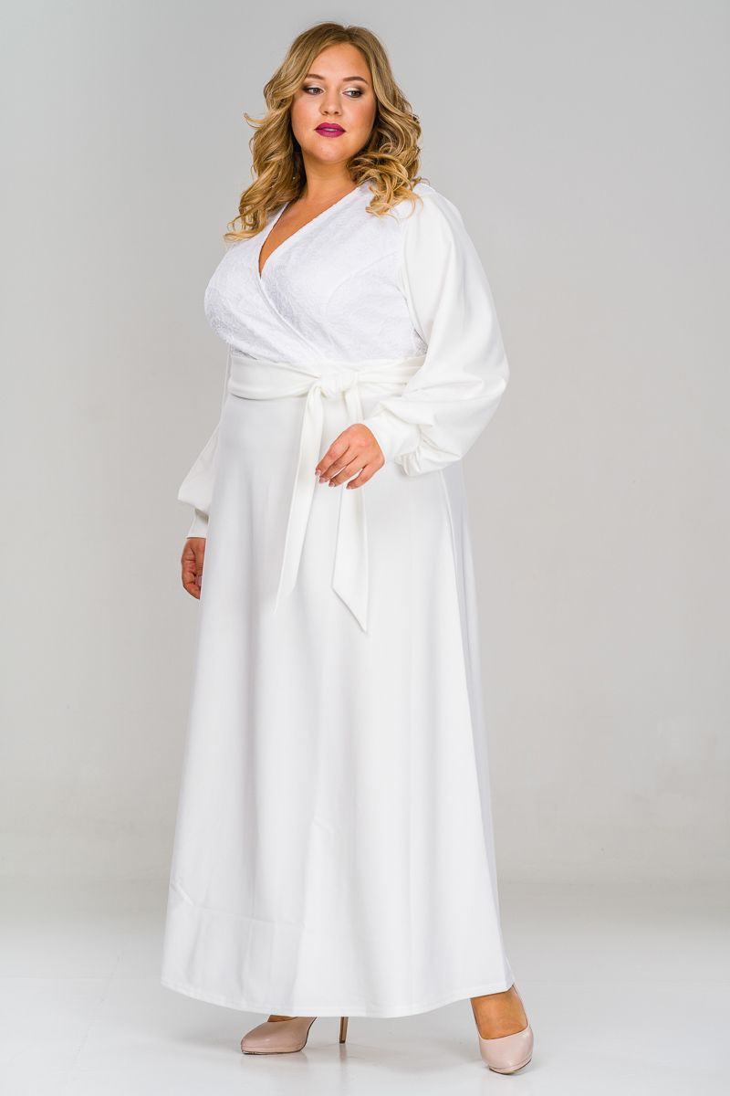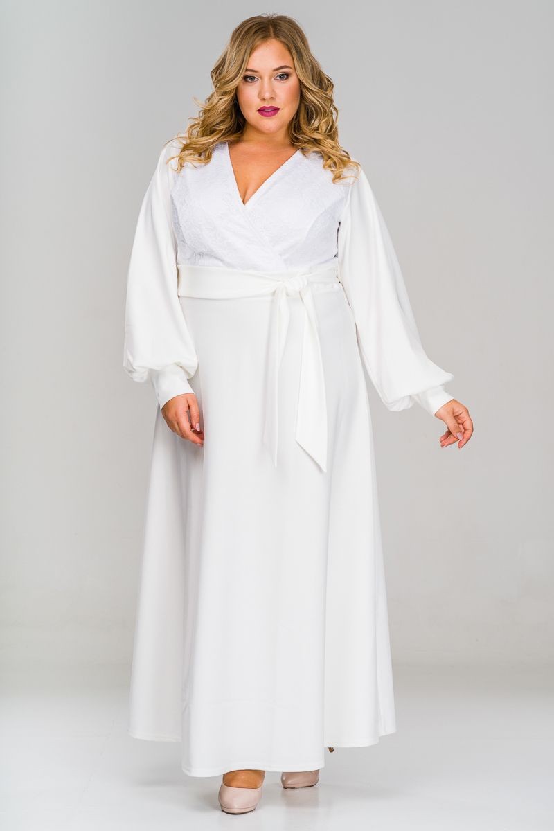 Платье длинное с манжетами, лиф дублирован кружевом, креп белый