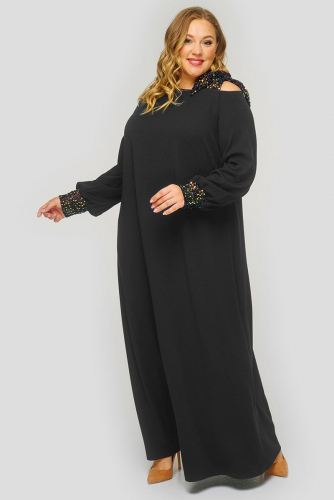 Платье длинное с разрезом из темно-синего крепа с пришивным украшением