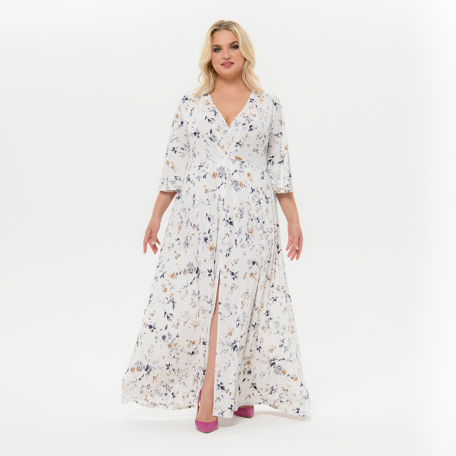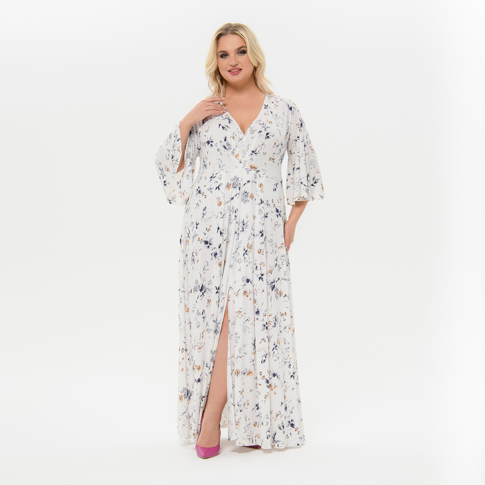 Элегантное длинное платье из струящегося трикотажа - "масло". V-образный вырез горловины зрительно вытягивает силуэт. По среднему шву юбки переда разрез.
