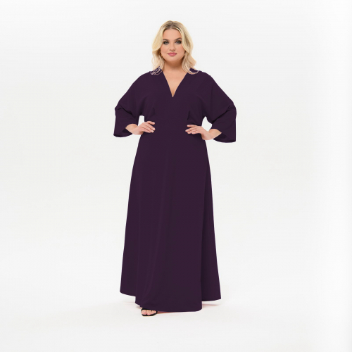 Платье длинное с V- вырезом, бургунди