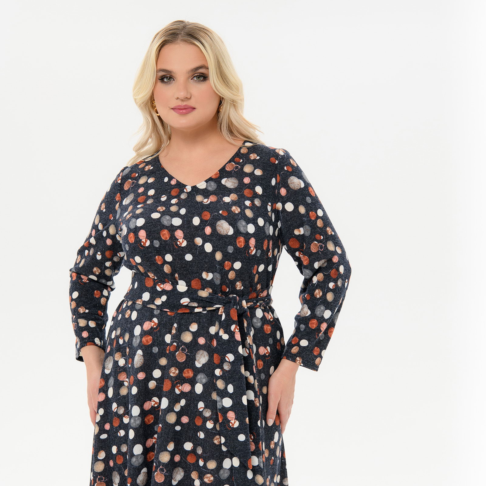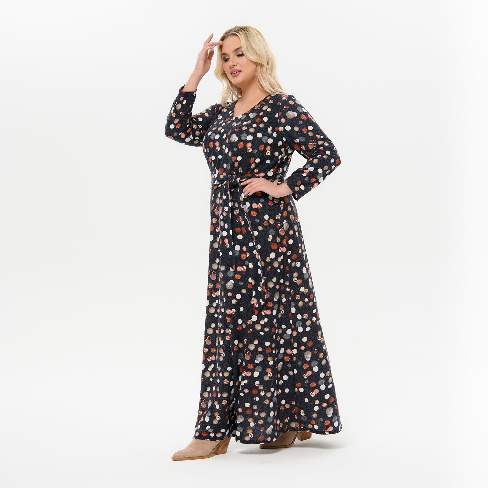 Платье длинное, с V-вырезом, джерси-ангора, принт "праздник"