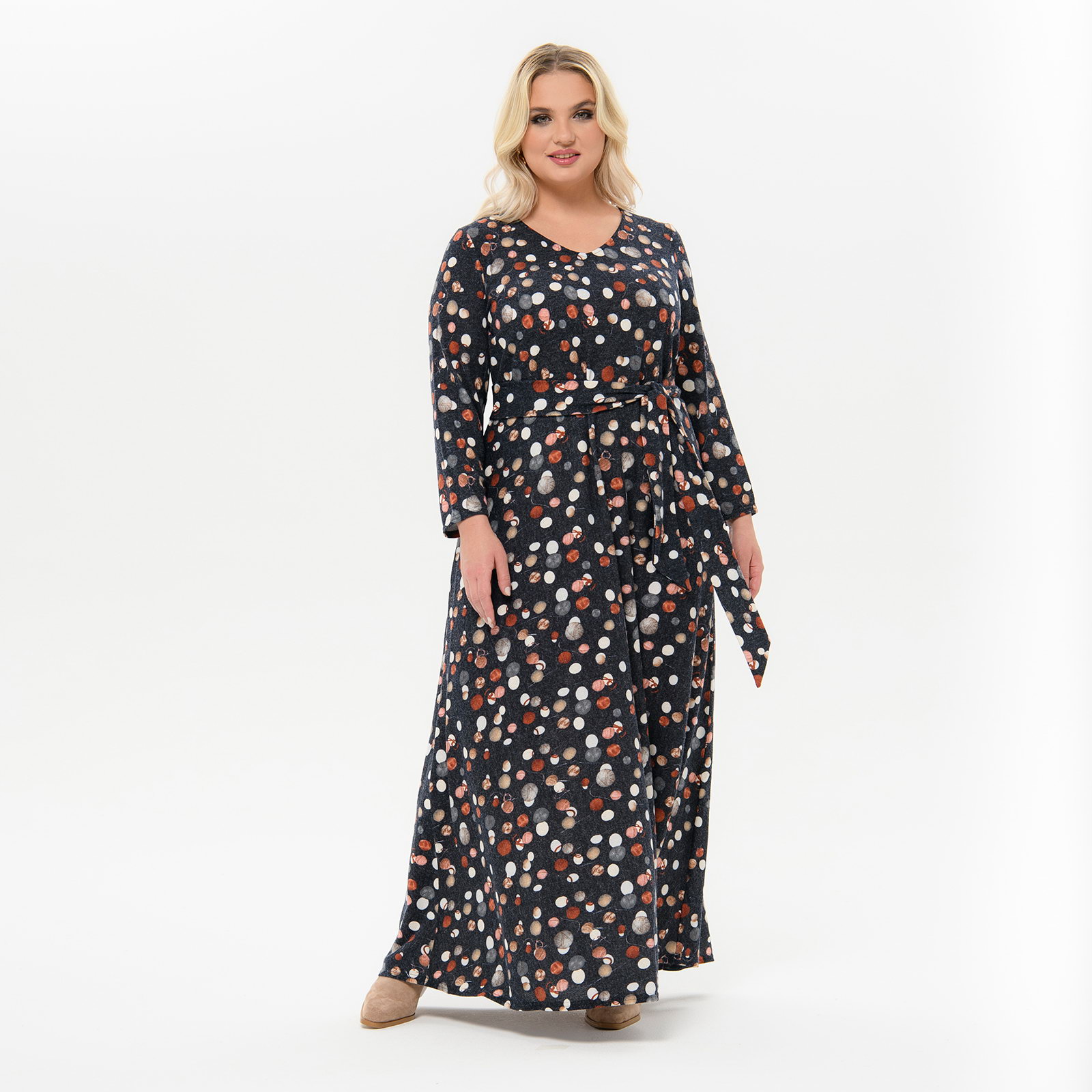 Комфортное длинное платье из джерси-ангора с эластаном. Платье отрезное немного выше линии талии, юбка расклешенная. V-вырез по горловине..