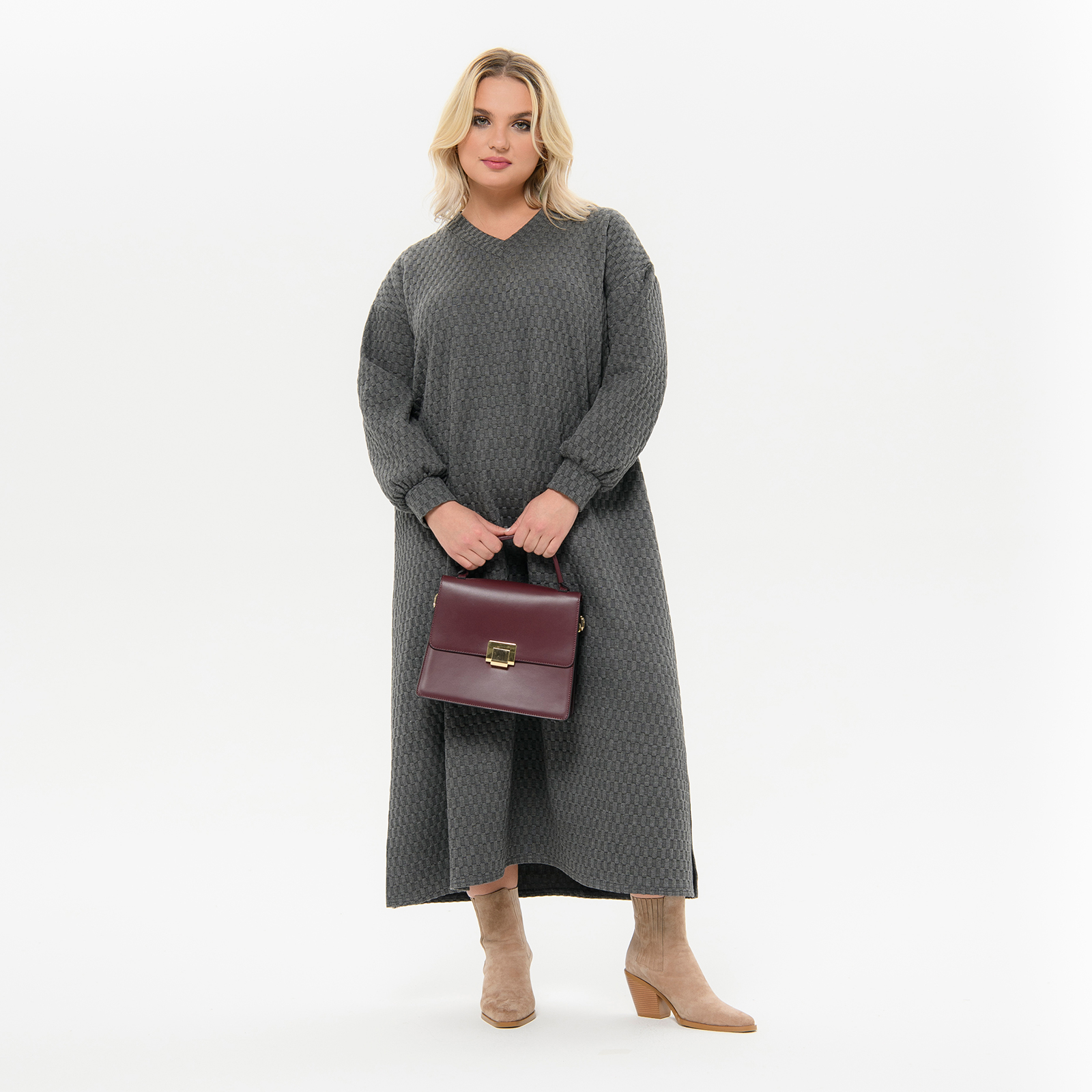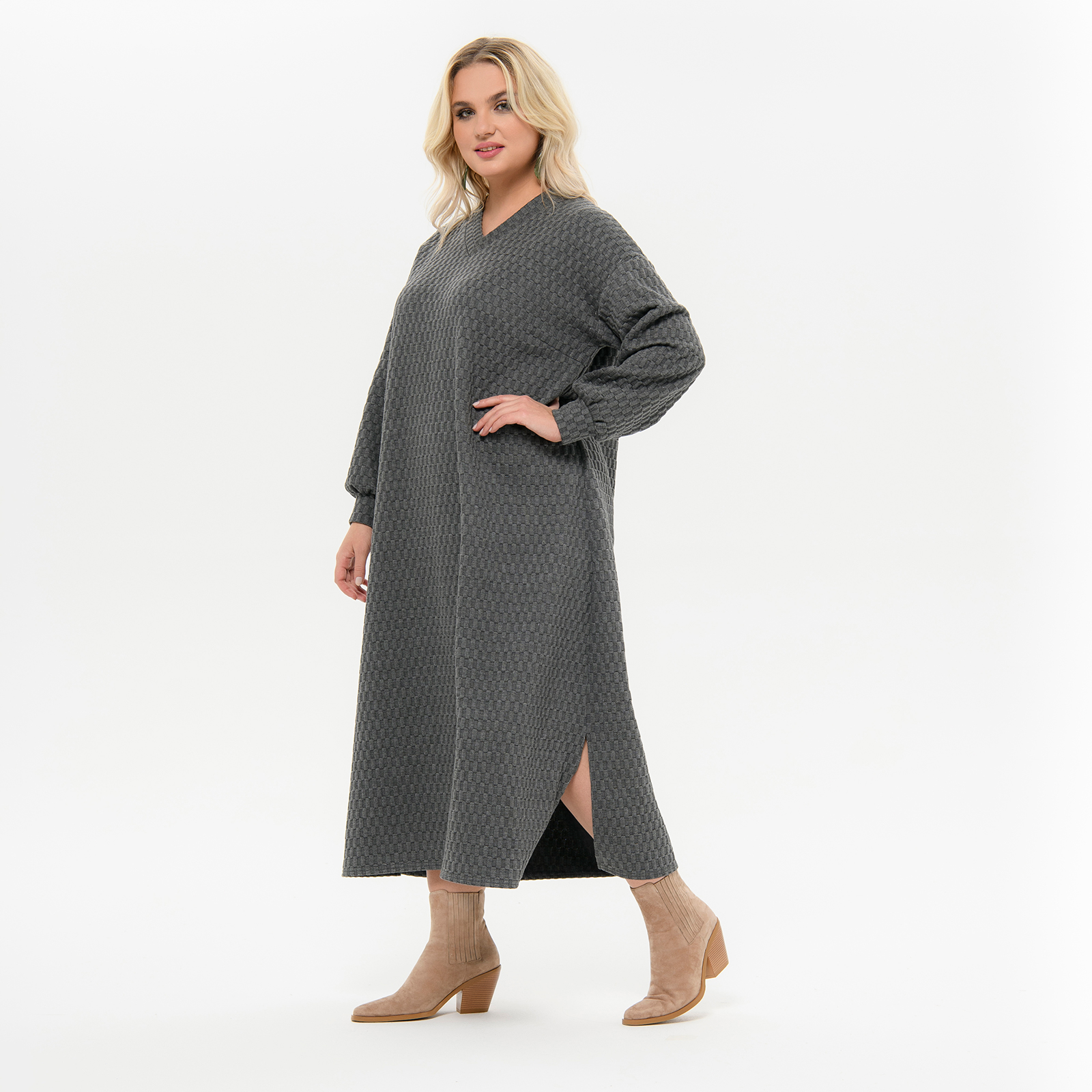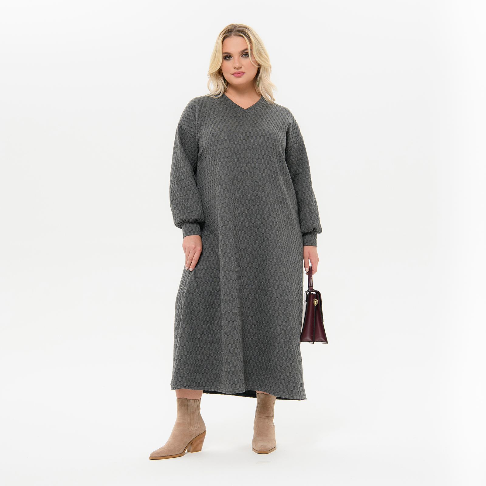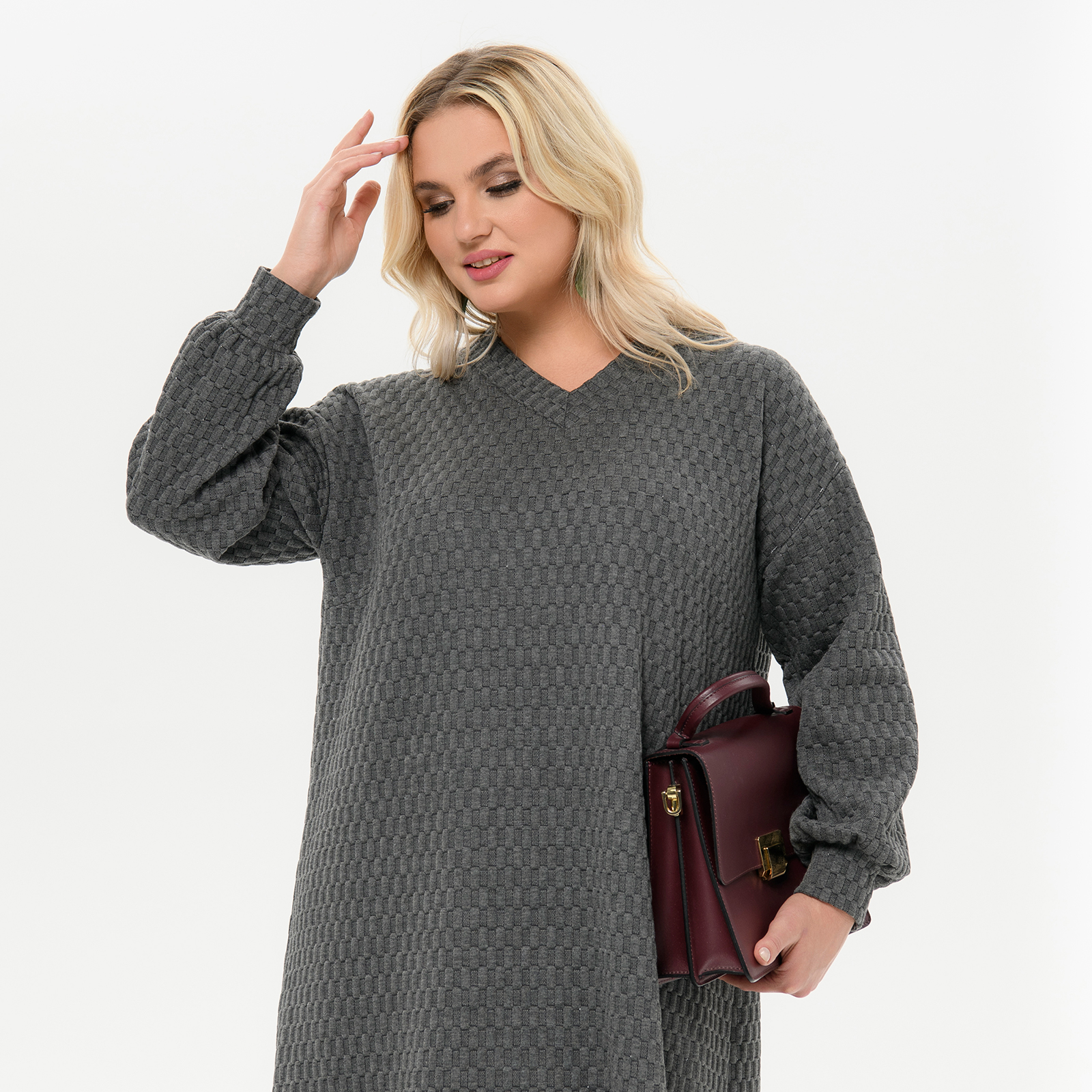 Платье - джемпер, комфортное, свободное, расширенное к низу, из фактурного трикотажа.
