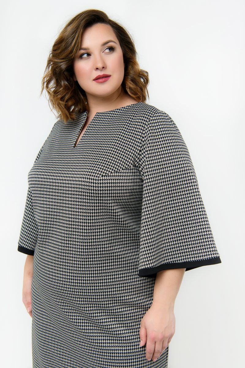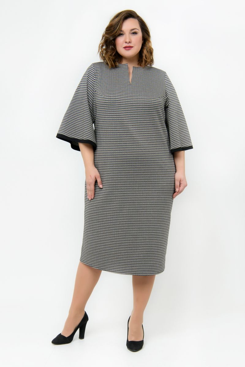 Платье-футляр из джерси, принт "гусиная лапка"