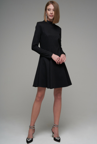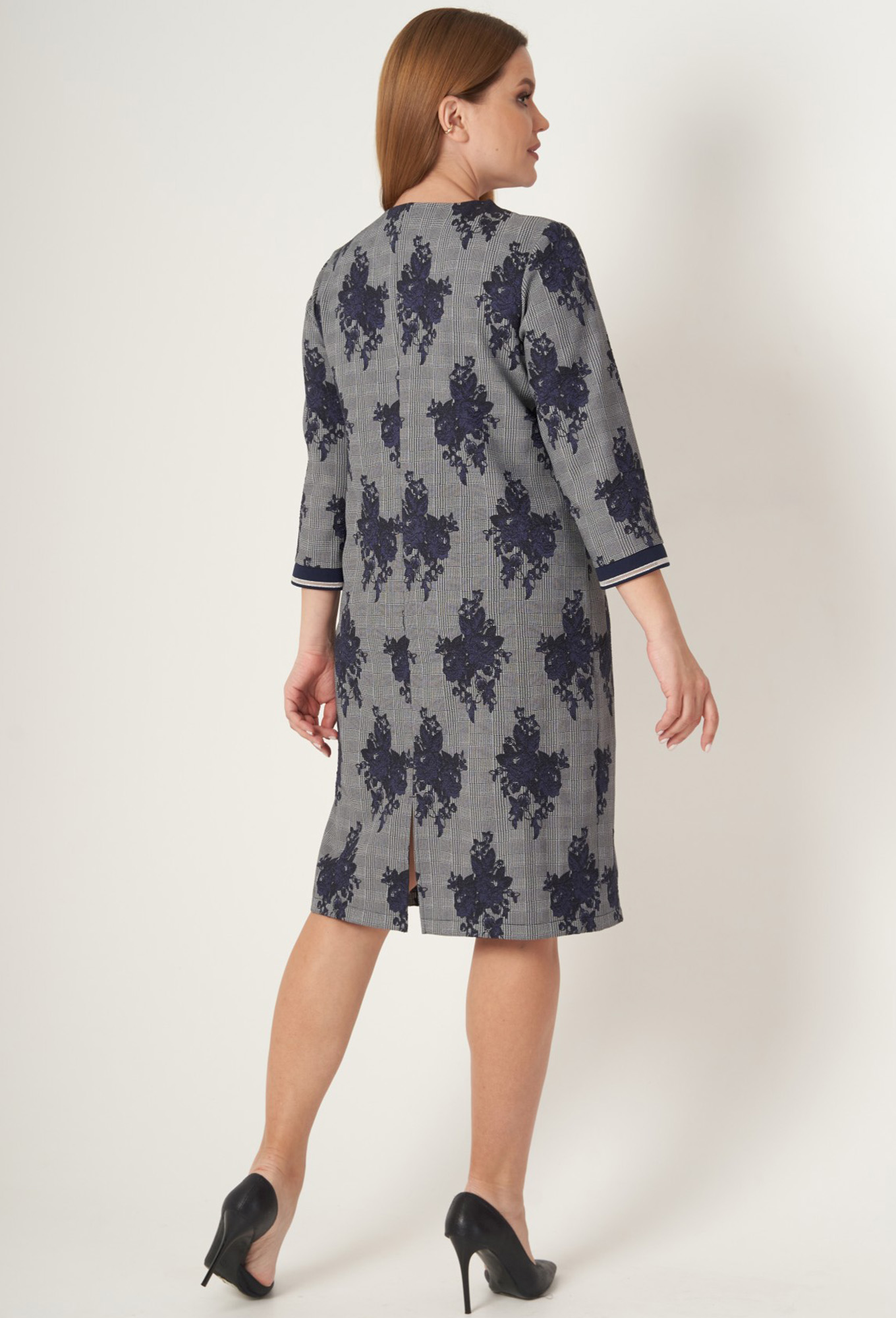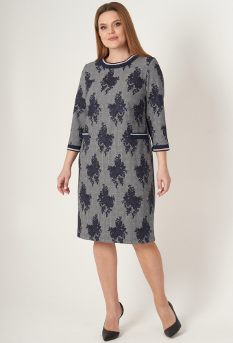 Платье прямого силуэта слегка приталенное. Перед с нагрудными вытачками и листочками. Горловина округлой формы , обработанная довязом. Спинка со средним швом и разрезом внизу. Рукав втачной одношовный. Низ рукава и листочки выполнены из того же довяза.