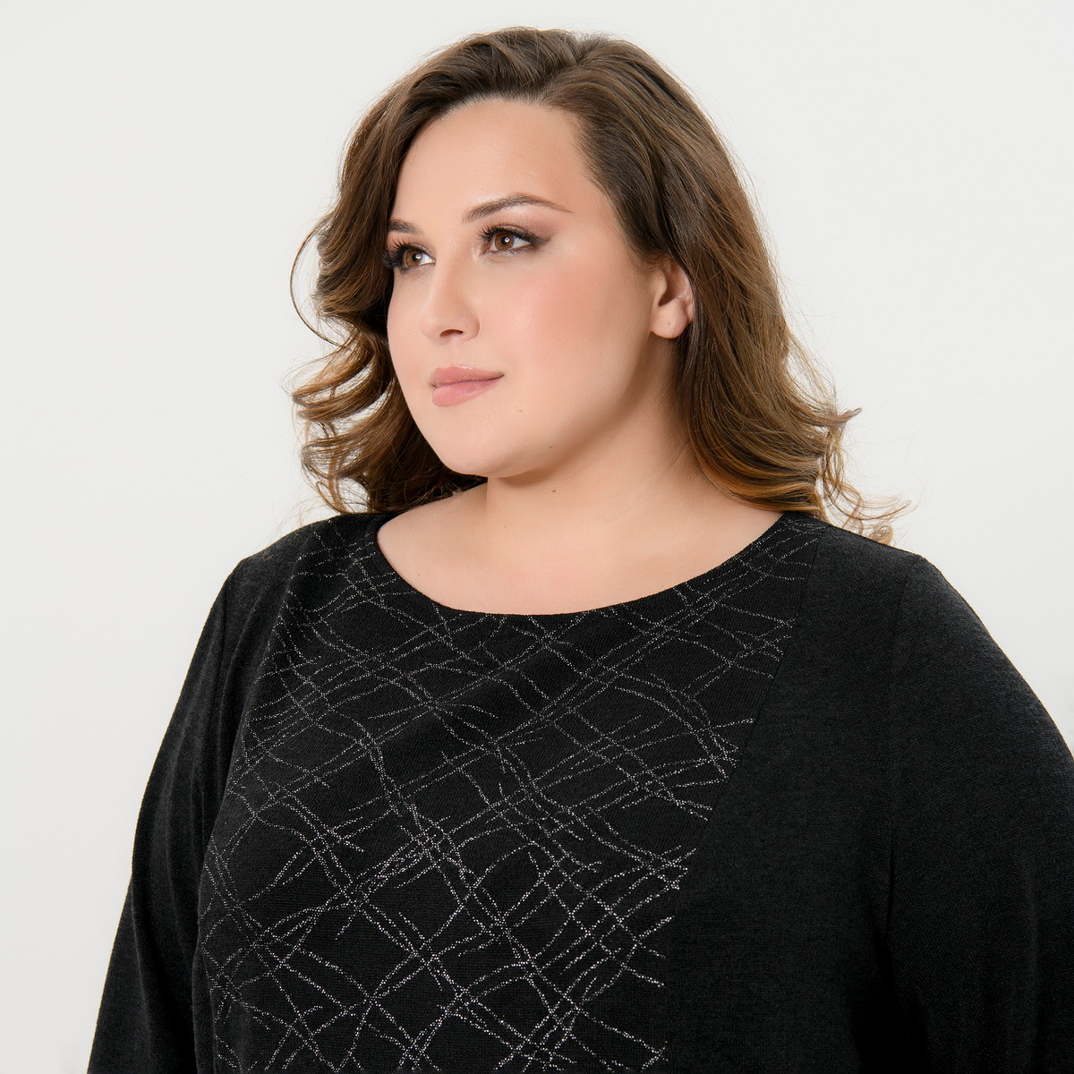 Платье выполнено из нового артикула джерси, имитирующего ангору.