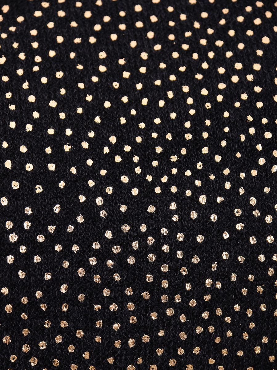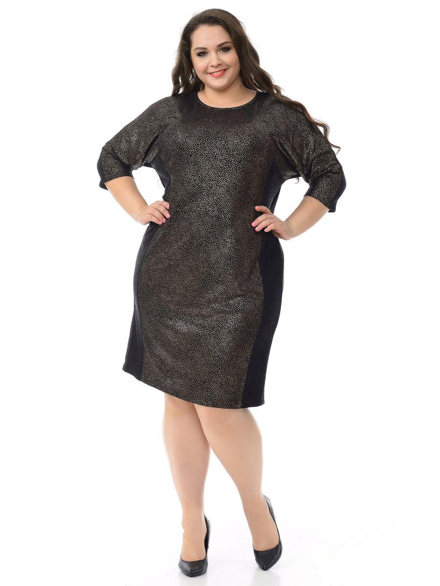 Платье полуприлегающего силуэта из искусственной ангоры. Рукав цельнокроеный. Центральная и верхняя часть переда из ткани-компаньона с золотым напылением.