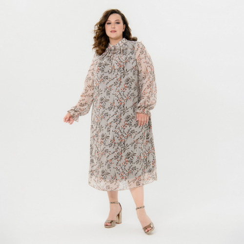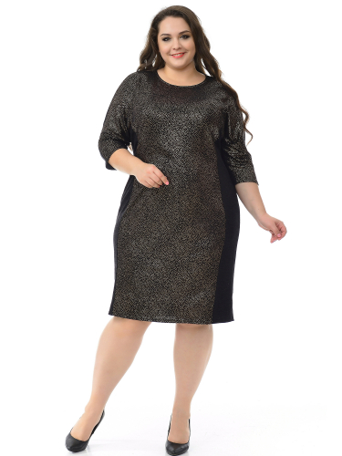 Платье полуприлегающего силуэта из искусственной ангоры. Рукав цельнокроеный. Центральная и верхняя часть переда из ткани-компаньона с золотым напылением.