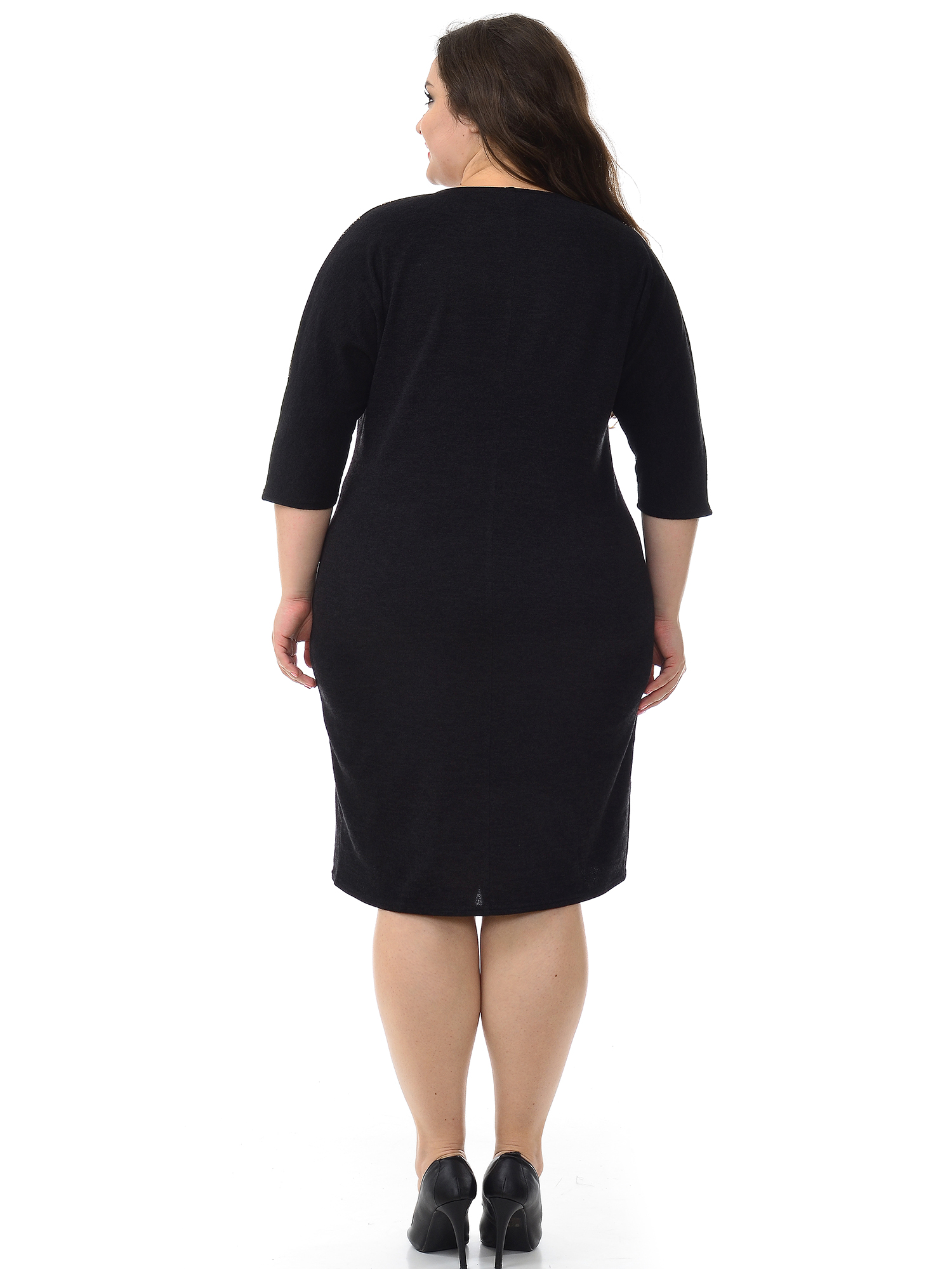 Платье из ангоры с цельнокроеным рукавом, черное *
