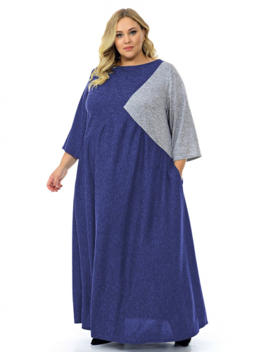 Платье длинное, свободного силуэта, из меланжевой ткани на основе вискозы. Нижняя часть платья отрезная, присборенная. Линия подреза по переду фигурная, по спинке горизонтальная. Основной цвет бордовый. Левая часть переда и левый рукав из отделочной светло-серого оттенка такого же качества как основной материал.  В боковых швах карманы. Рукав втачной, свободный.