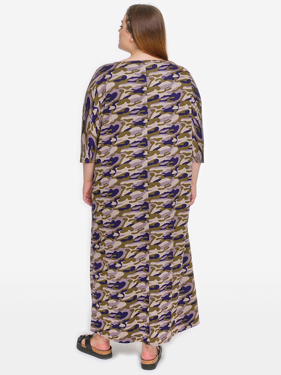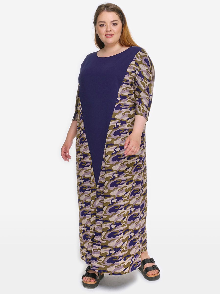 Платье длинное, свободного силуэта, из джерси. По переду вставка в форме вытянутого треугольника. Вырез горловины "лодочка".