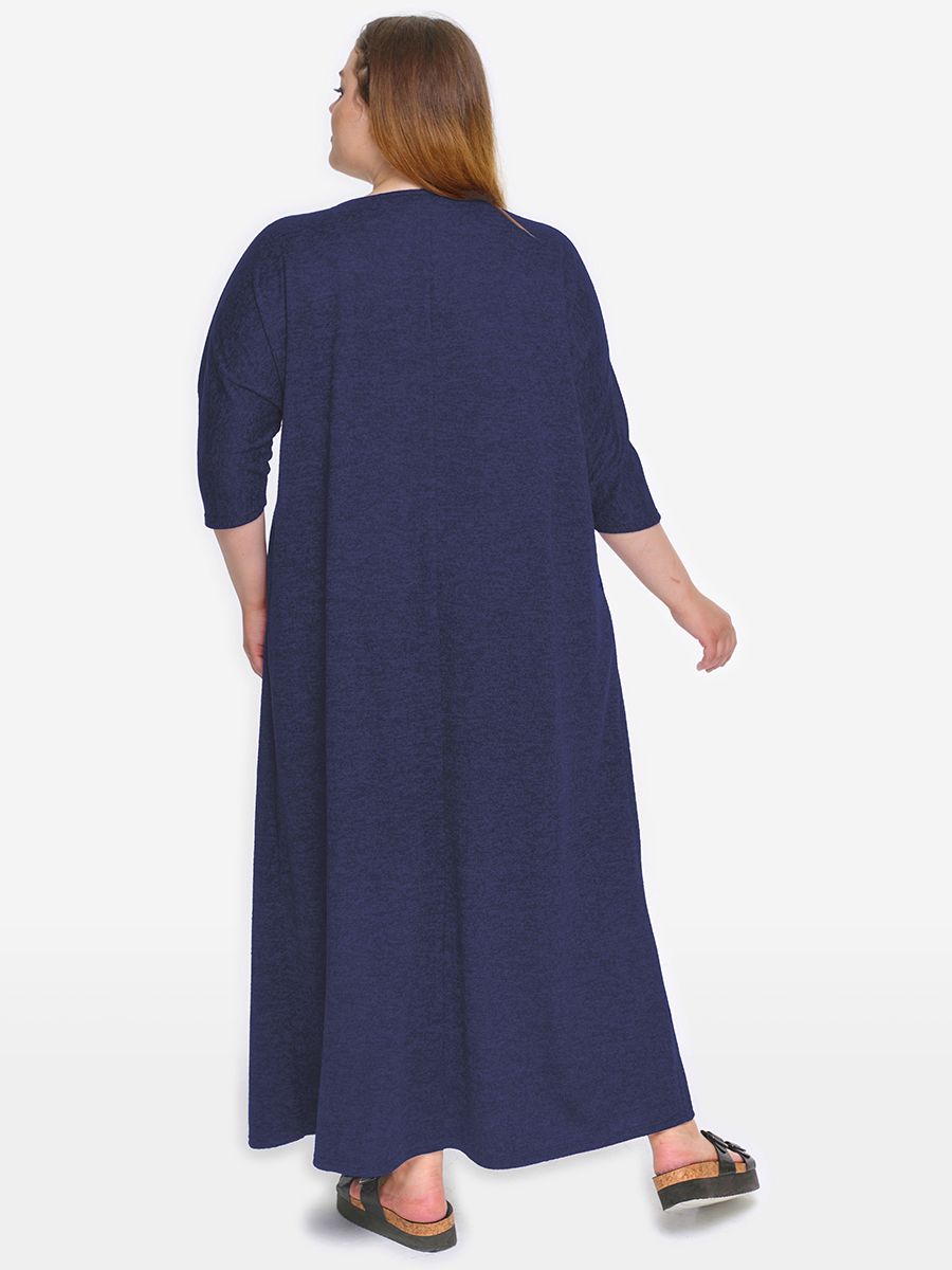 Платье длинное, свободного силуэта, из джерси. По переду вставка в форме вытянутого треугольника. Вырез горловины "лодочка".