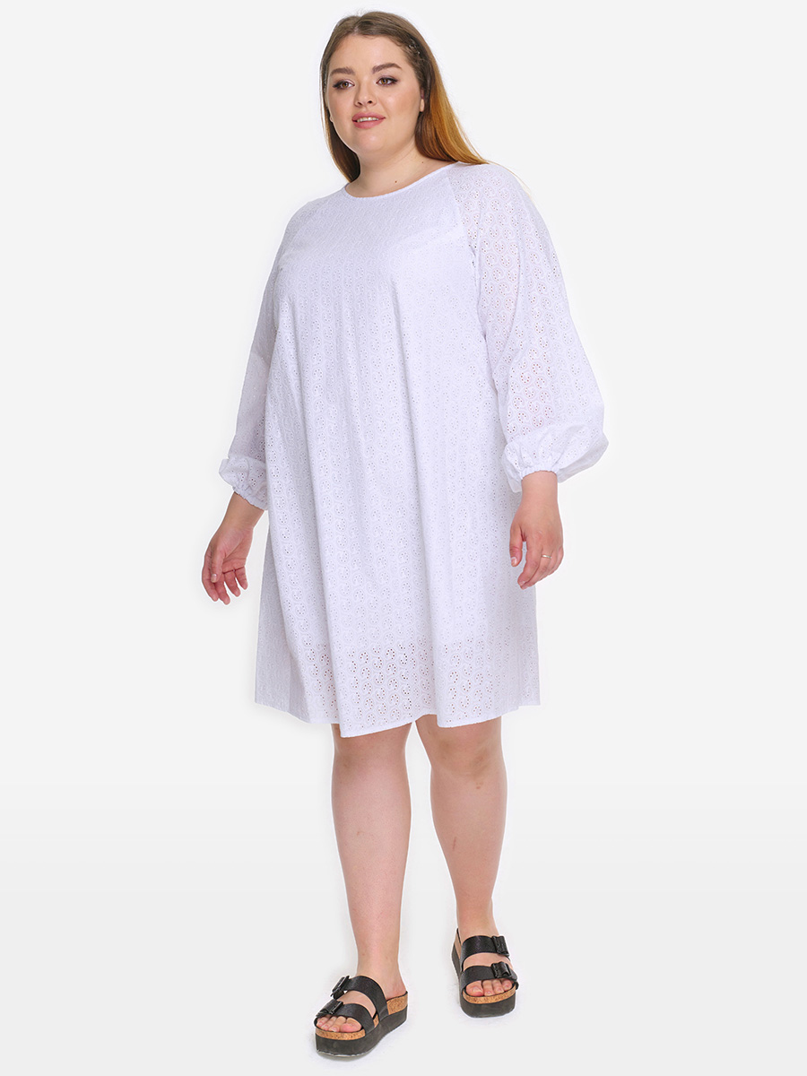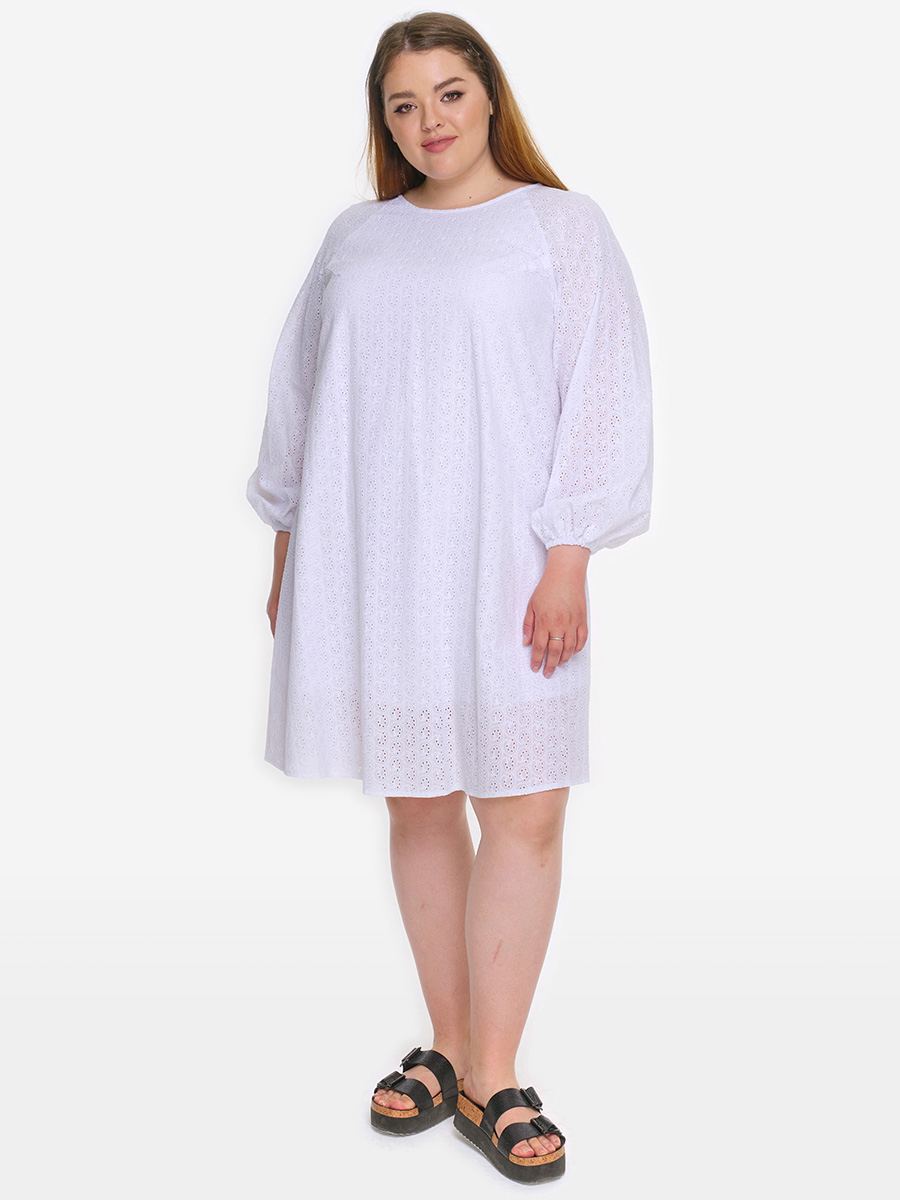 Платье из хлопка с рукавом реглан, шитье белого цвета