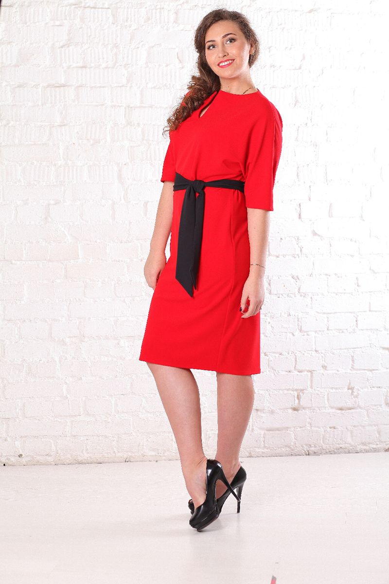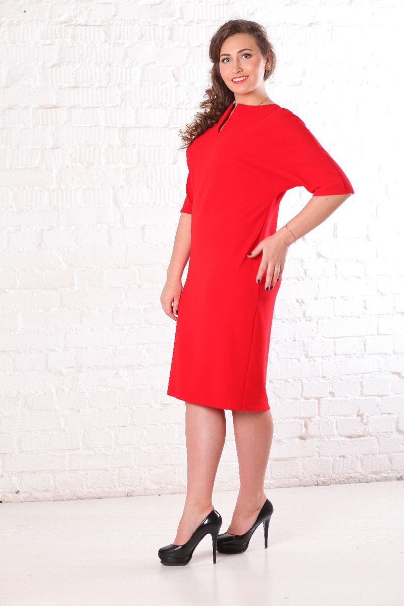 Платье из крепа с цельнокроеным рукавом красное