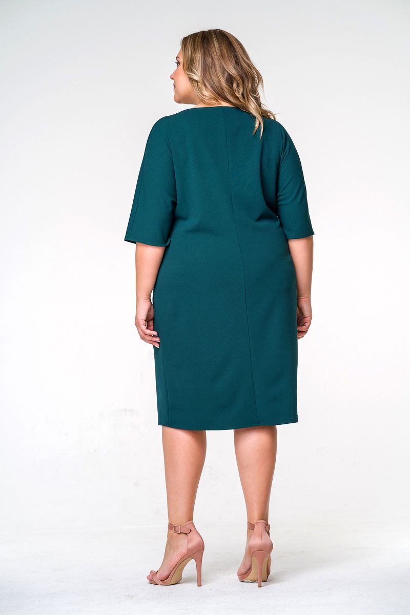 Платье из крепа с цельнокроеным рукавом зеленого цвета