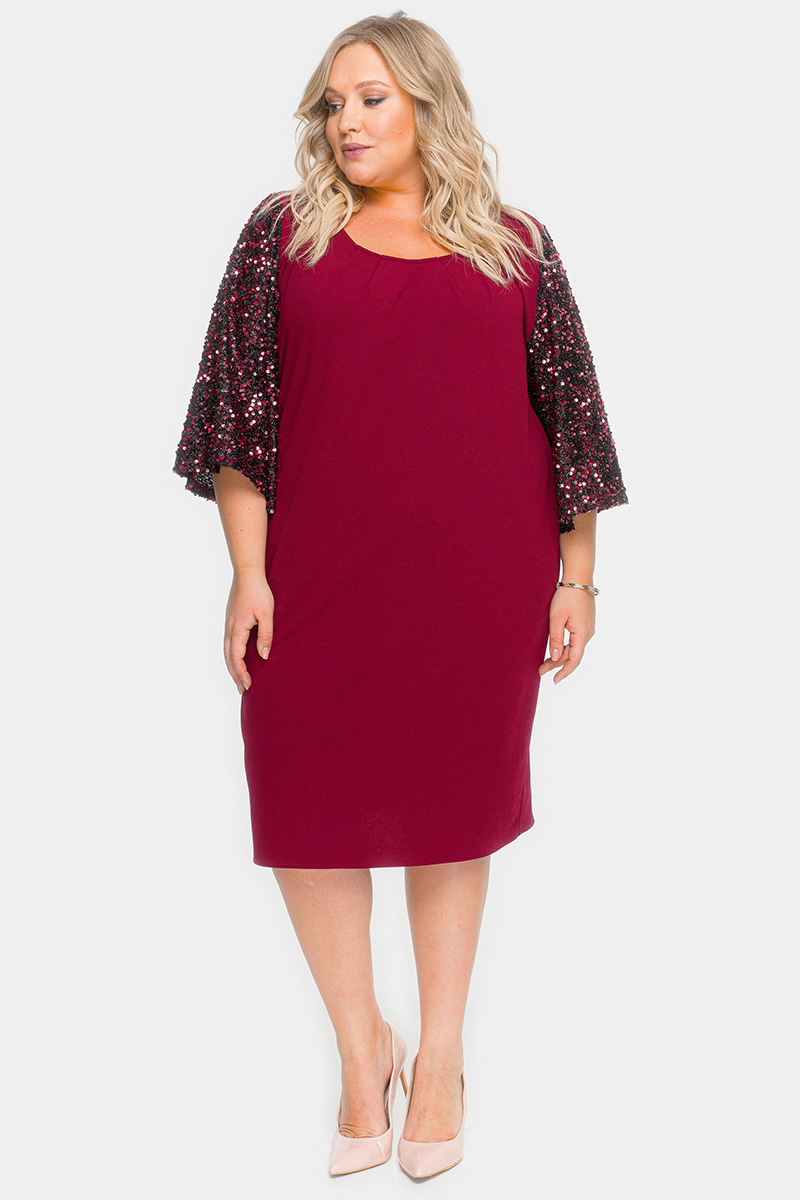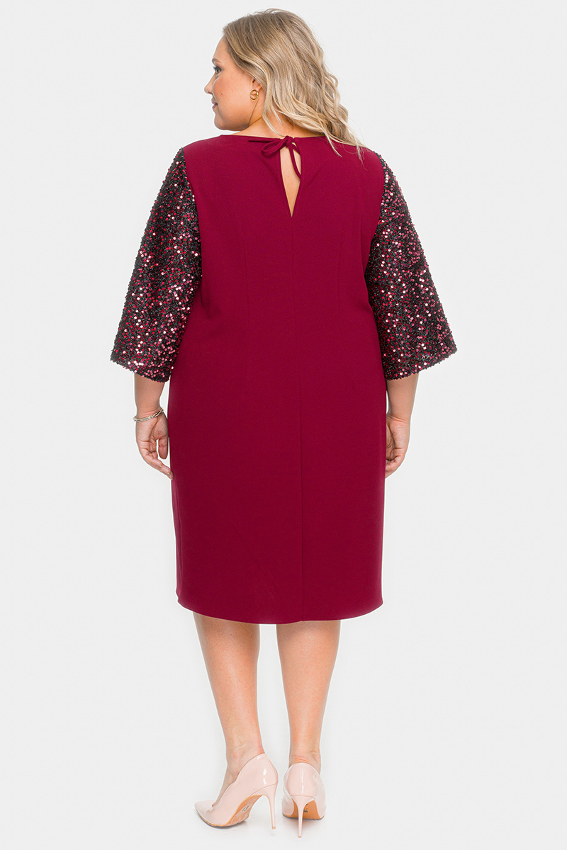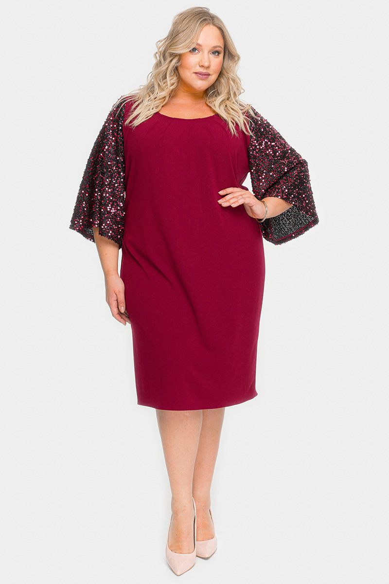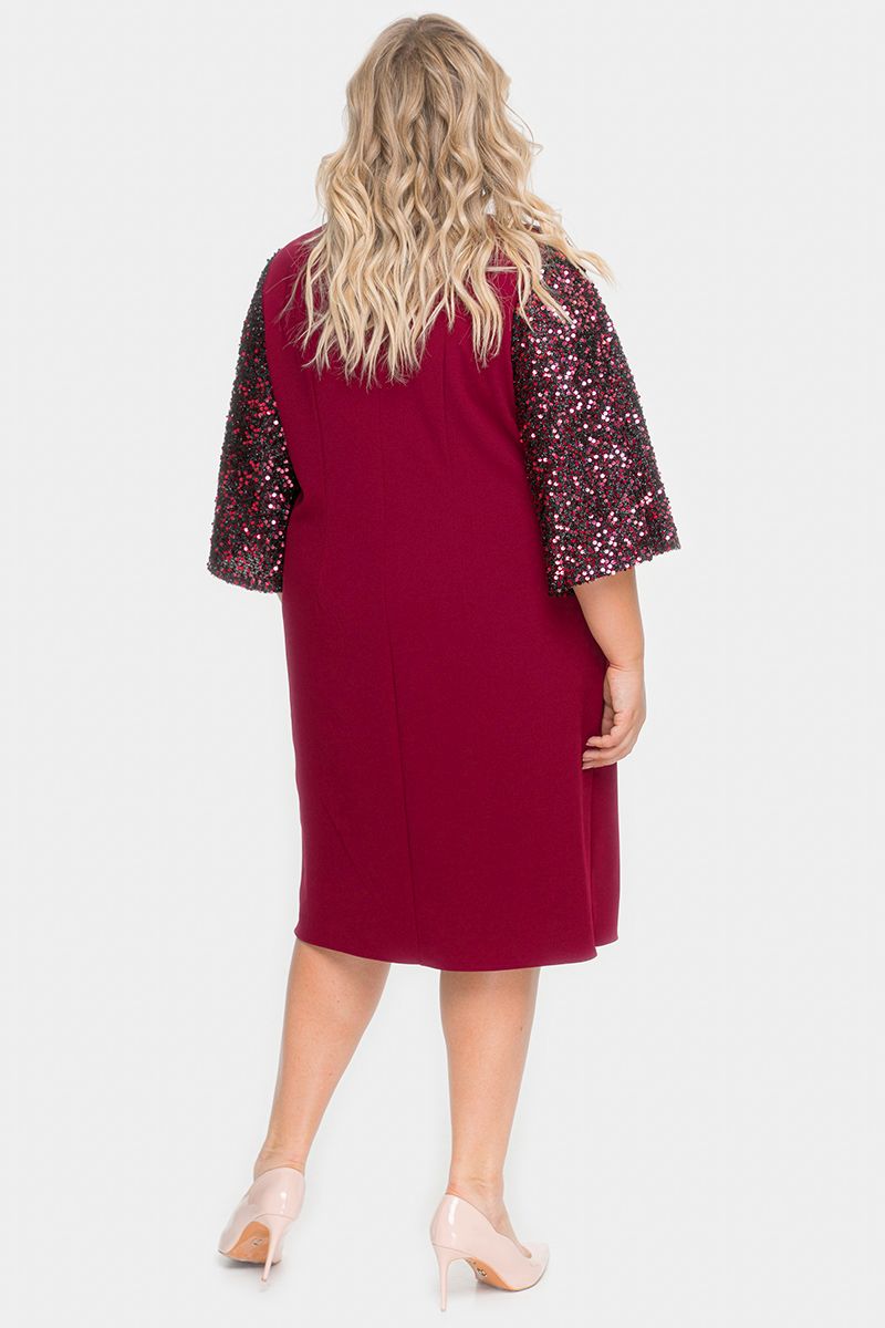 Платье из крепа с широким рукавом из пайеток, бордовое
