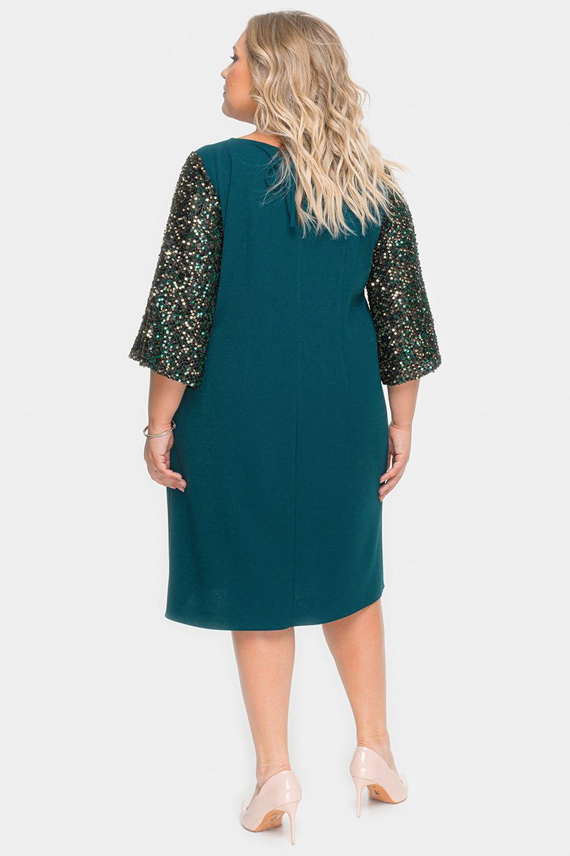 Платье из крепа с широким рукавом из пайеток, зеленое