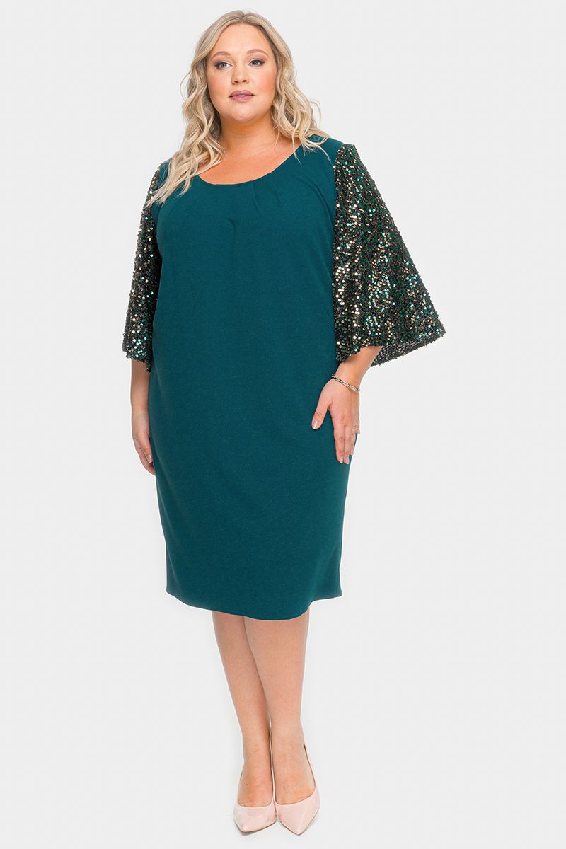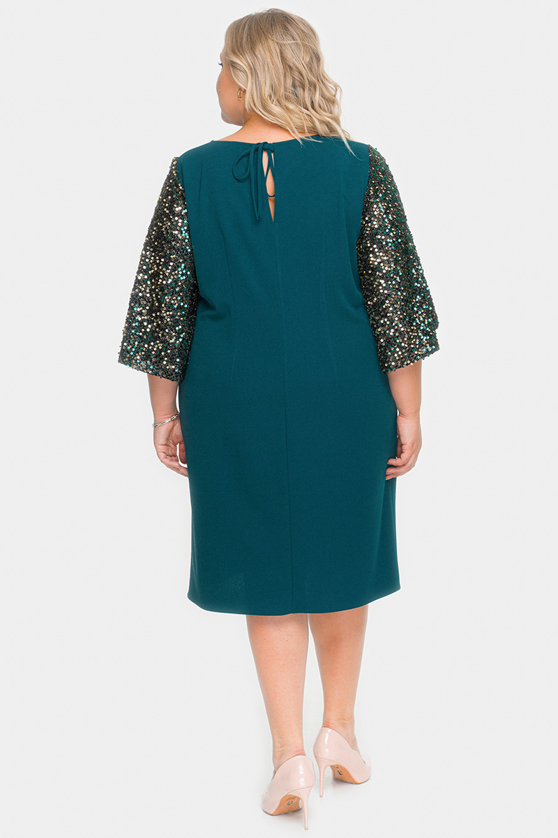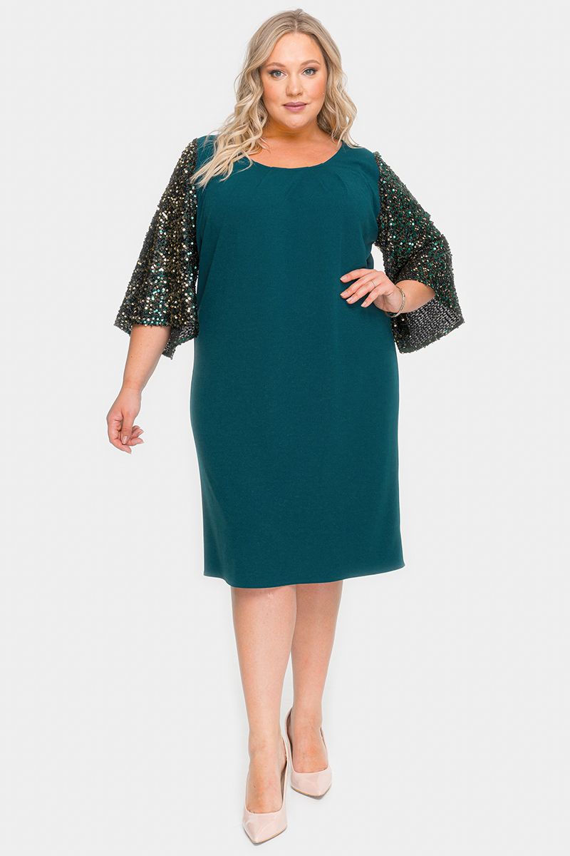 Элегантное коктельное платье прямого силуэта. Рукав расширенный из пайеток.