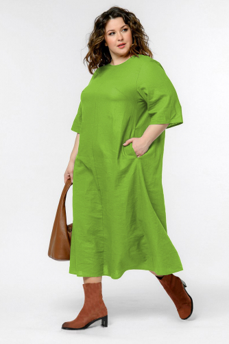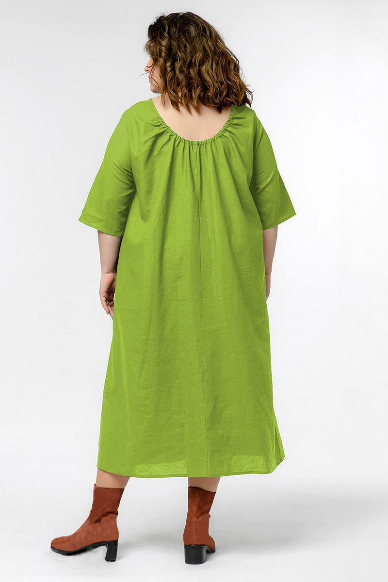 Платье из льна с резиночкой по спинке, цвет яркий салатовый