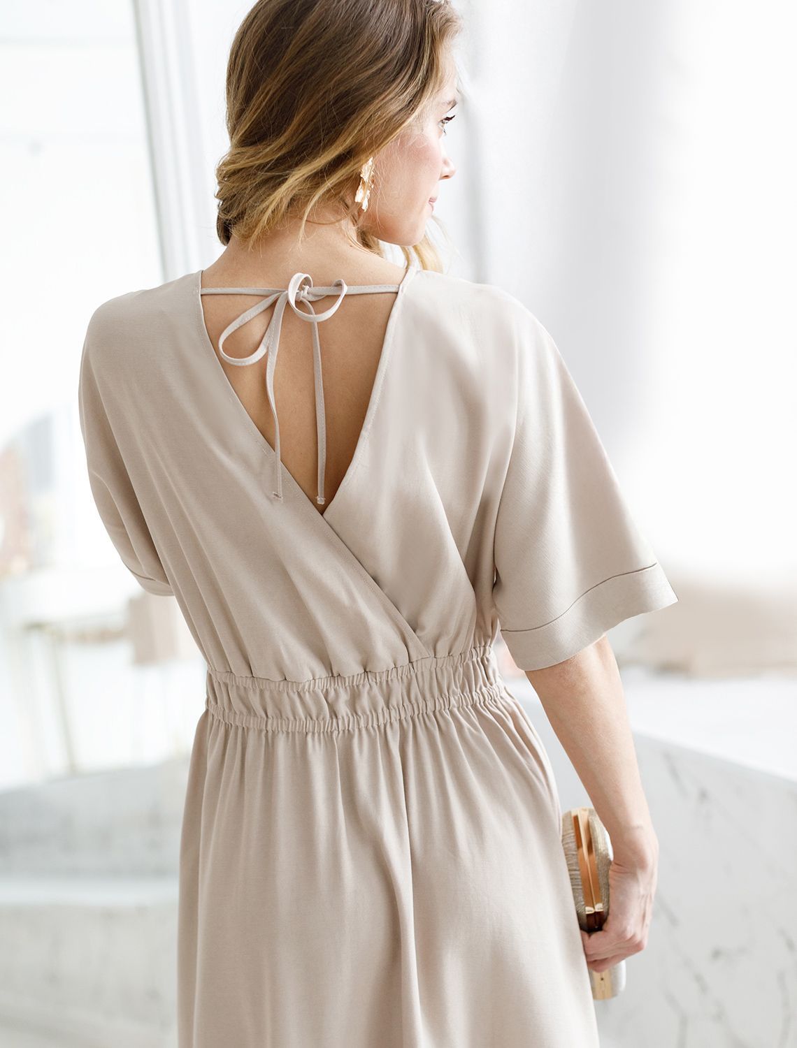 Платье из плотного лиоцелла с поясом на резинке D22.244 светло-бежевый
